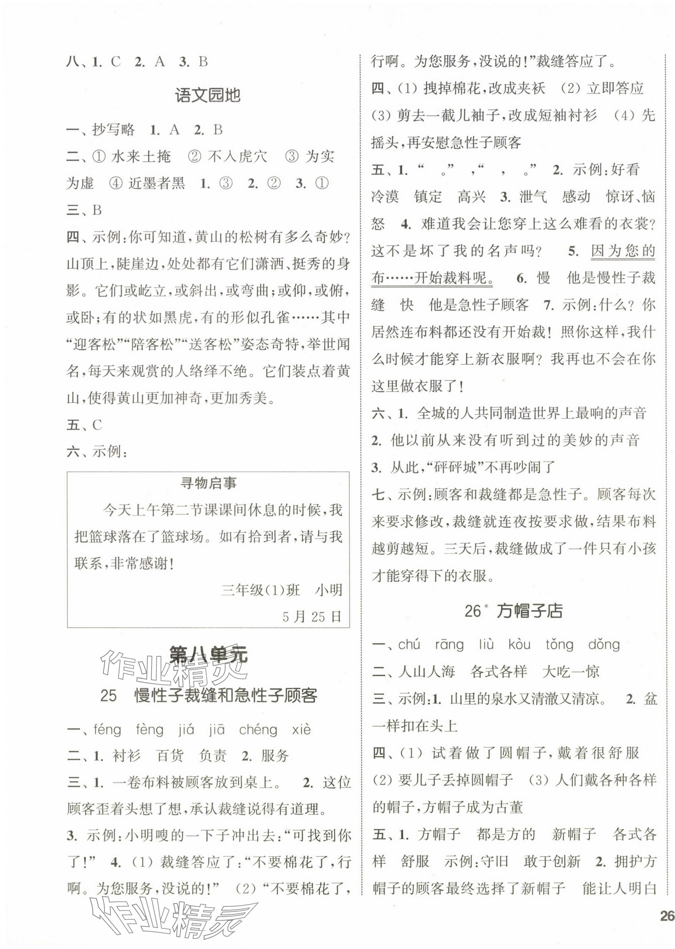 注:目前有些书本章节名称可能整理的还不是很完善,但都是按照顺序排列的,请同学们按照顺序仔细查找。练习册 2024年通城学典课时新体验三年级语文下册人教版 答案主要是用来给同学们做完题方便对答案用的,请勿直接抄袭。