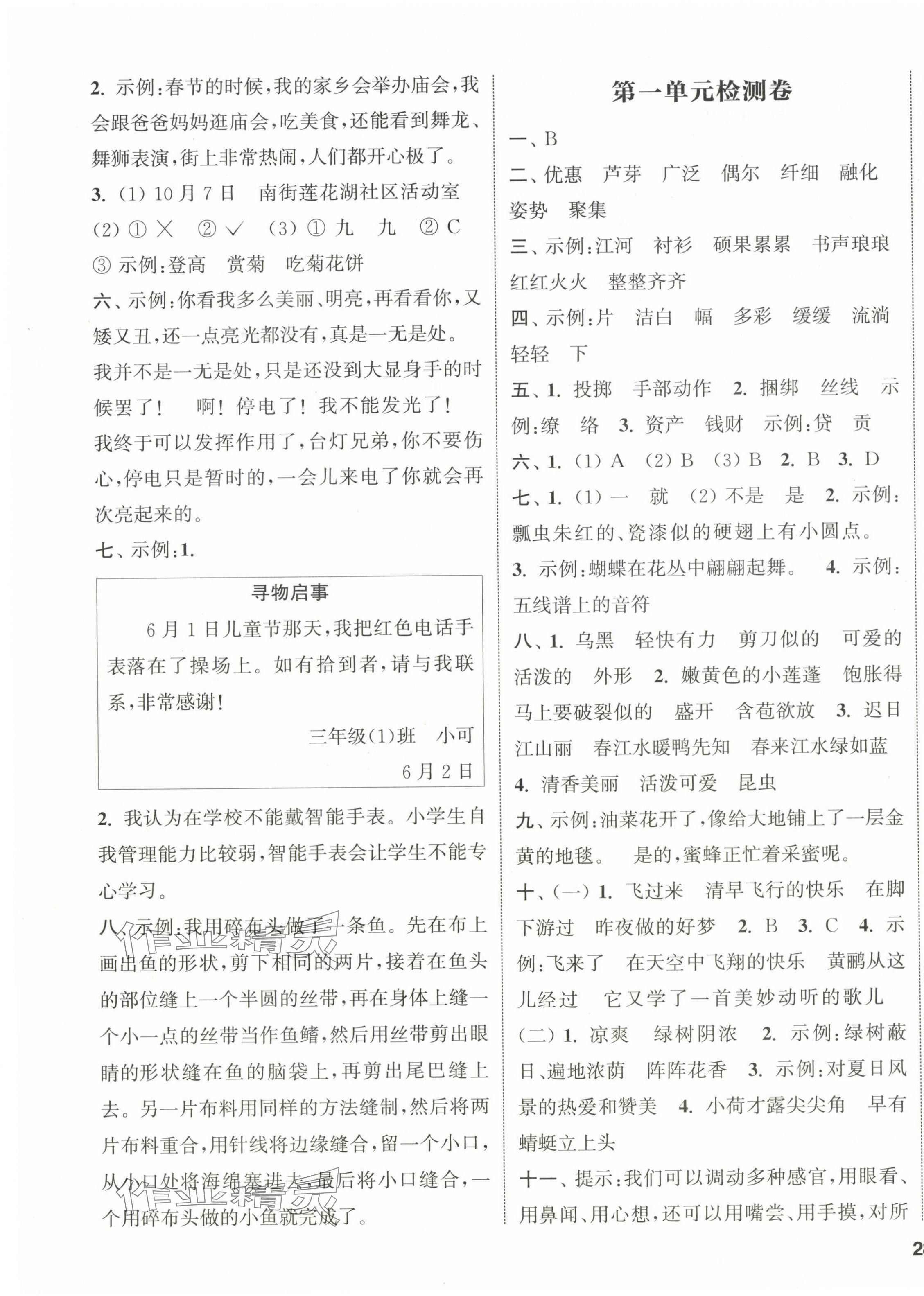 注:目前有些书本章节名称可能整理的还不是很完善,但都是按照顺序排列的,请同学们按照顺序仔细查找。练习册 2024年通城学典课时新体验三年级语文下册人教版 答案主要是用来给同学们做完题方便对答案用的,请勿直接抄袭。