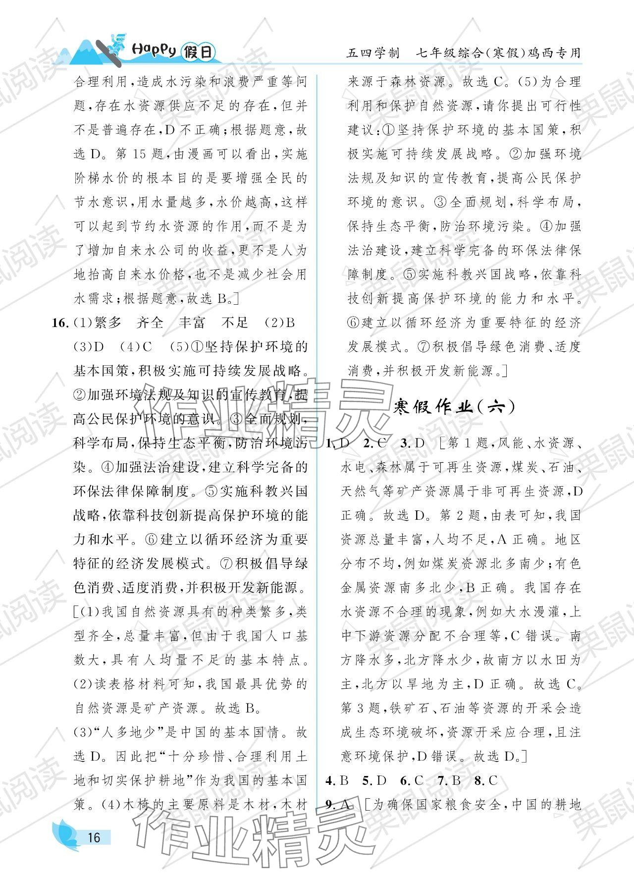 注:目前有些书本章节名称可能整理的还不是很完善,但都是按照顺序排列的,请同学们按照顺序仔细查找。练习册 2024年寒假Happy假日七年级综合五四制鸡西专用 答案主要是用来给同学们做完题方便对答案用的,请勿直接抄袭。