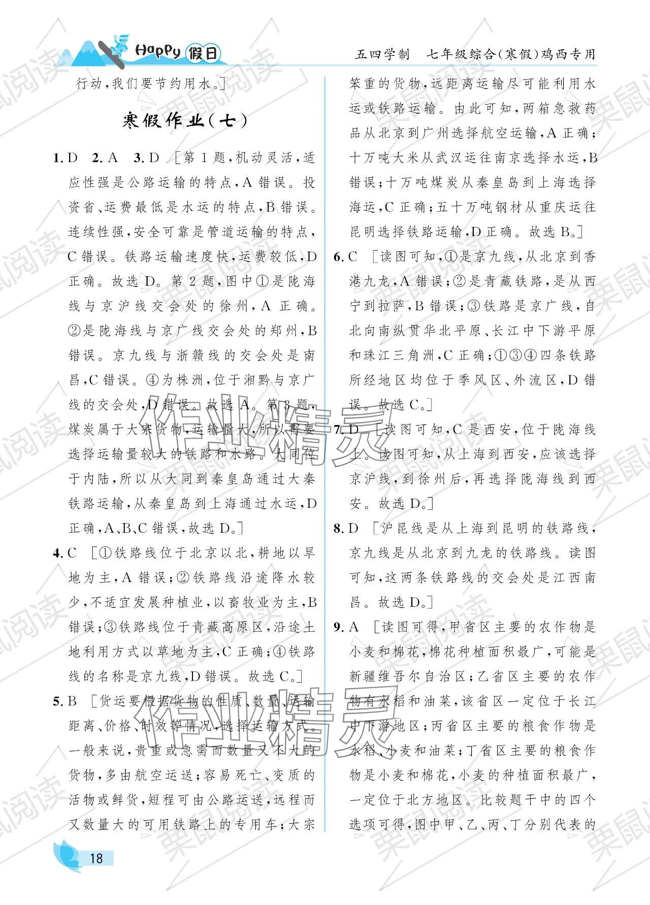 2024年寒假Happy假日七年级综合五四制鸡西专用