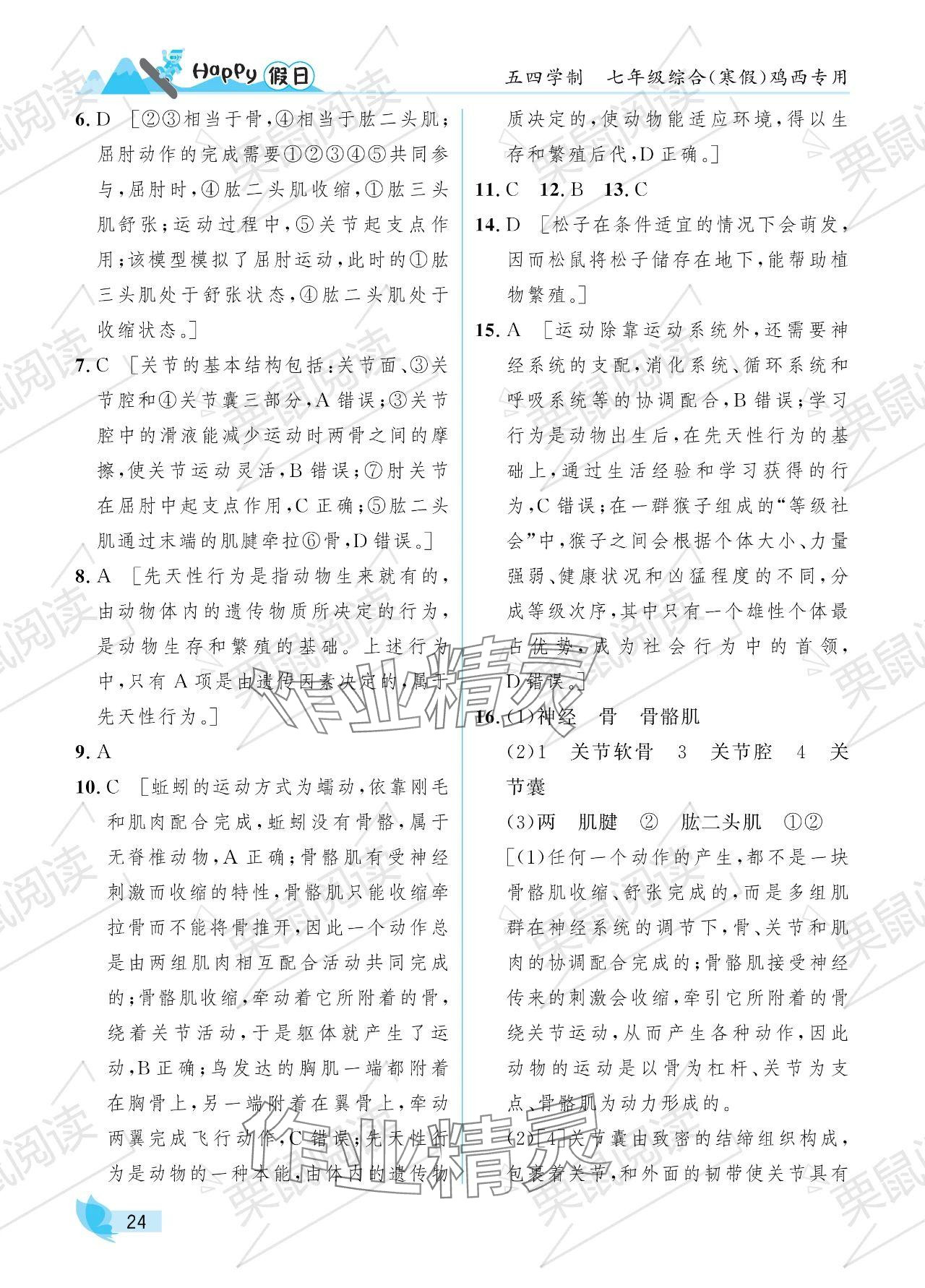 2024年寒假Happy假日七年级综合五四制鸡西专用