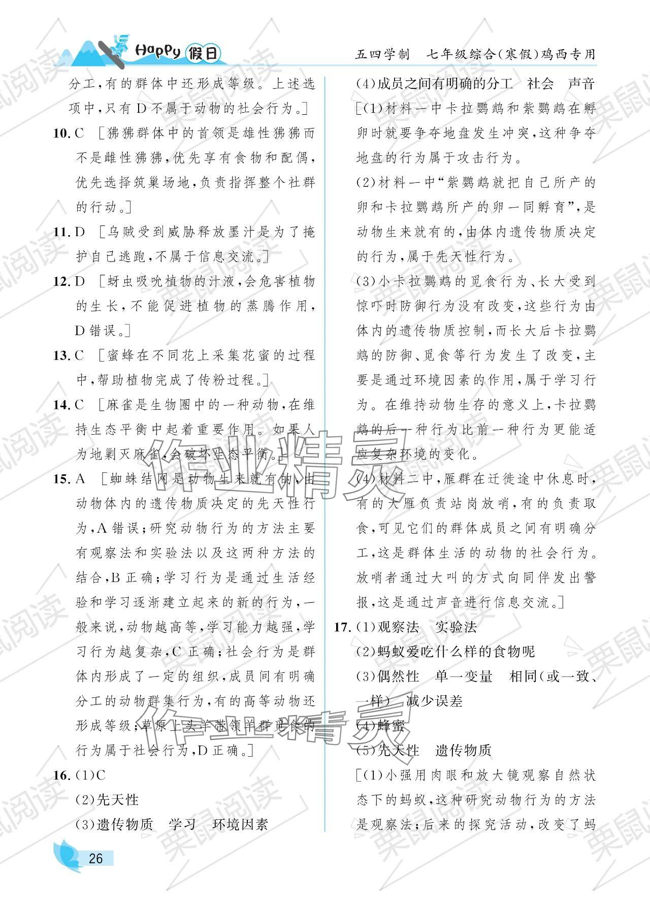 注:目前有些书本章节名称可能整理的还不是很完善,但都是按照顺序排列的,请同学们按照顺序仔细查找。练习册 2024年寒假Happy假日七年级综合五四制鸡西专用 答案主要是用来给同学们做完题方便对答案用的,请勿直接抄袭。