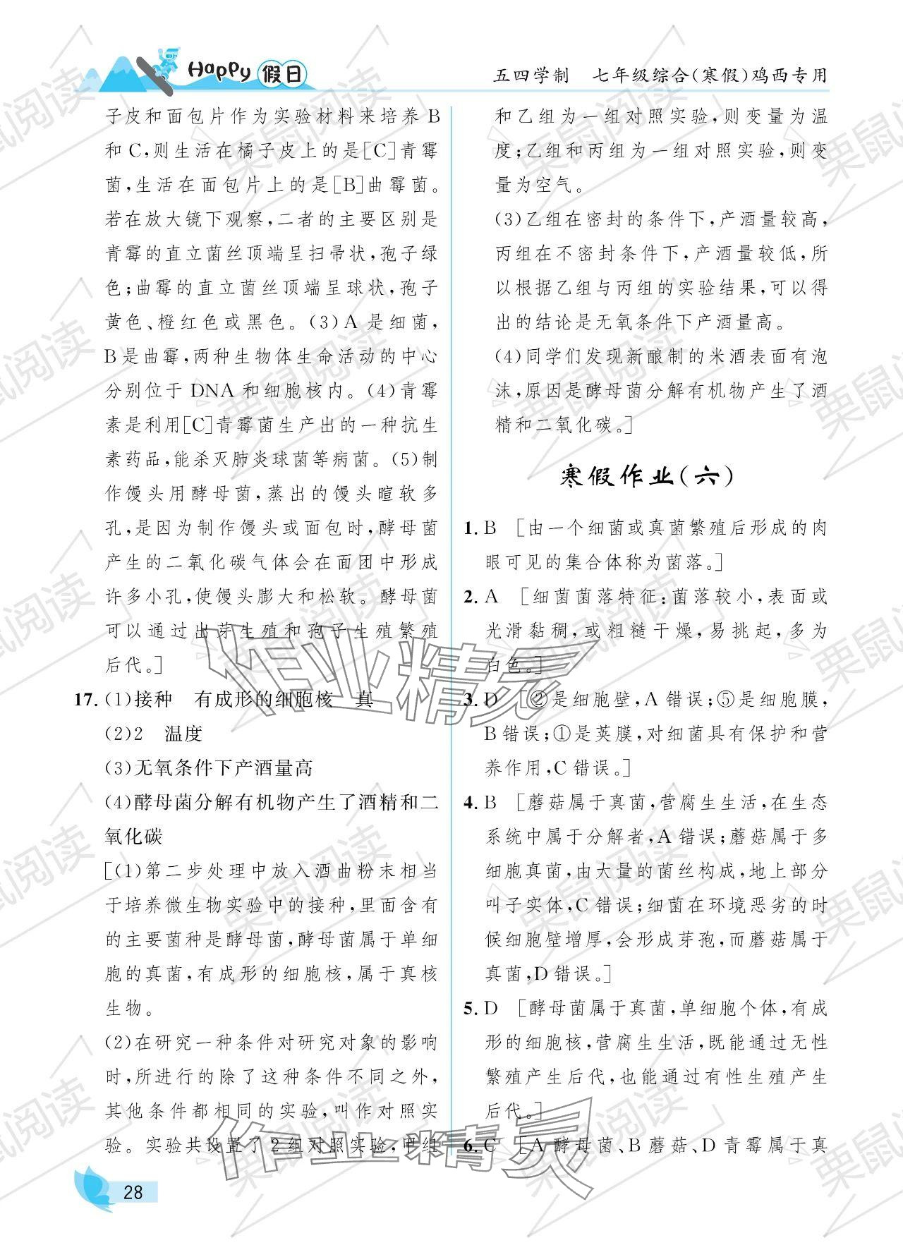 2024年寒假Happy假日七年级综合五四制鸡西专用