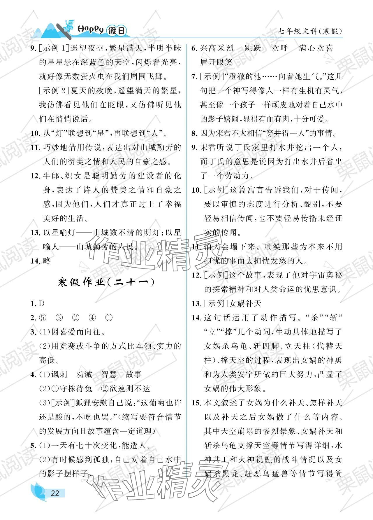 注:目前有些书本章节名称可能整理的还不是很完善,但都是按照顺序排列的,请同学们按照顺序仔细查找。练习册 2024年寒假Happy假日七年级文科 答案主要是用来给同学们做完题方便对答案用的,请勿直接抄袭。