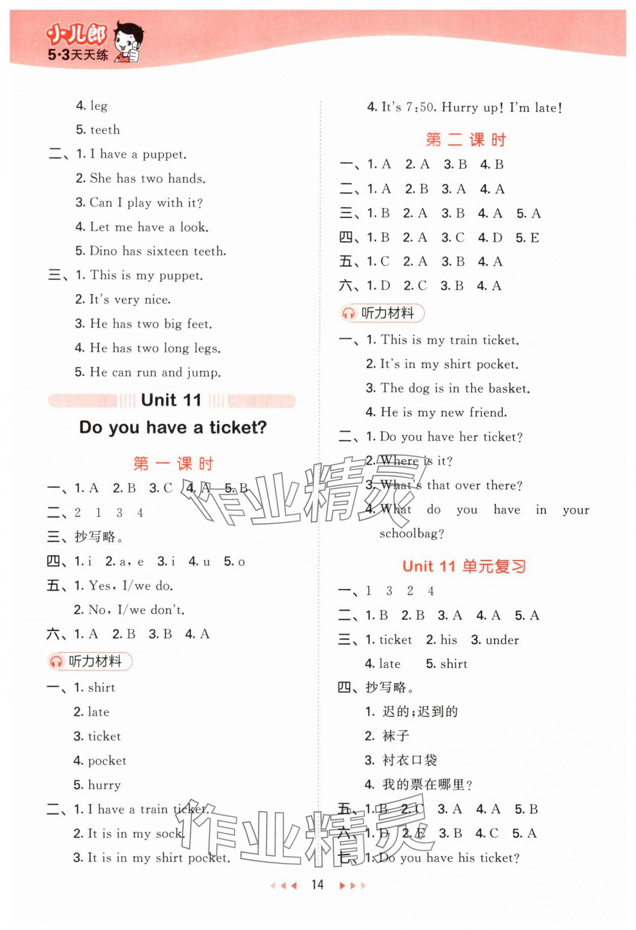 注:目前有些书本章节名称可能整理的还不是很完善,但都是按照顺序排列的,请同学们按照顺序仔细查找。练习册 2024年53天天练四年级英语下册湘少版 答案主要是用来给同学们做完题方便对答案用的,请勿直接抄袭。