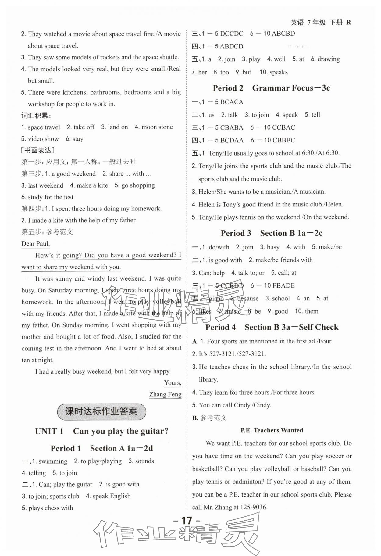 注:目前有些书本章节名称可能整理的还不是很完善,但都是按照顺序排列的,请同学们按照顺序仔细查找。练习册 2024年全程突破七年级英语下册人教版 答案主要是用来给同学们做完题方便对答案用的,请勿直接抄袭。