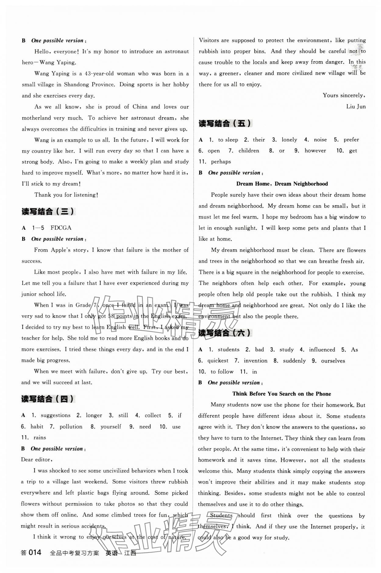 注:目前有些书本章节名称可能整理的还不是很完善,但都是按照顺序排列的,请同学们按照顺序仔细查找。练习册 2024年全品中考复习方案英语江西专版 答案主要是用来给同学们做完题方便对答案用的,请勿直接抄袭。