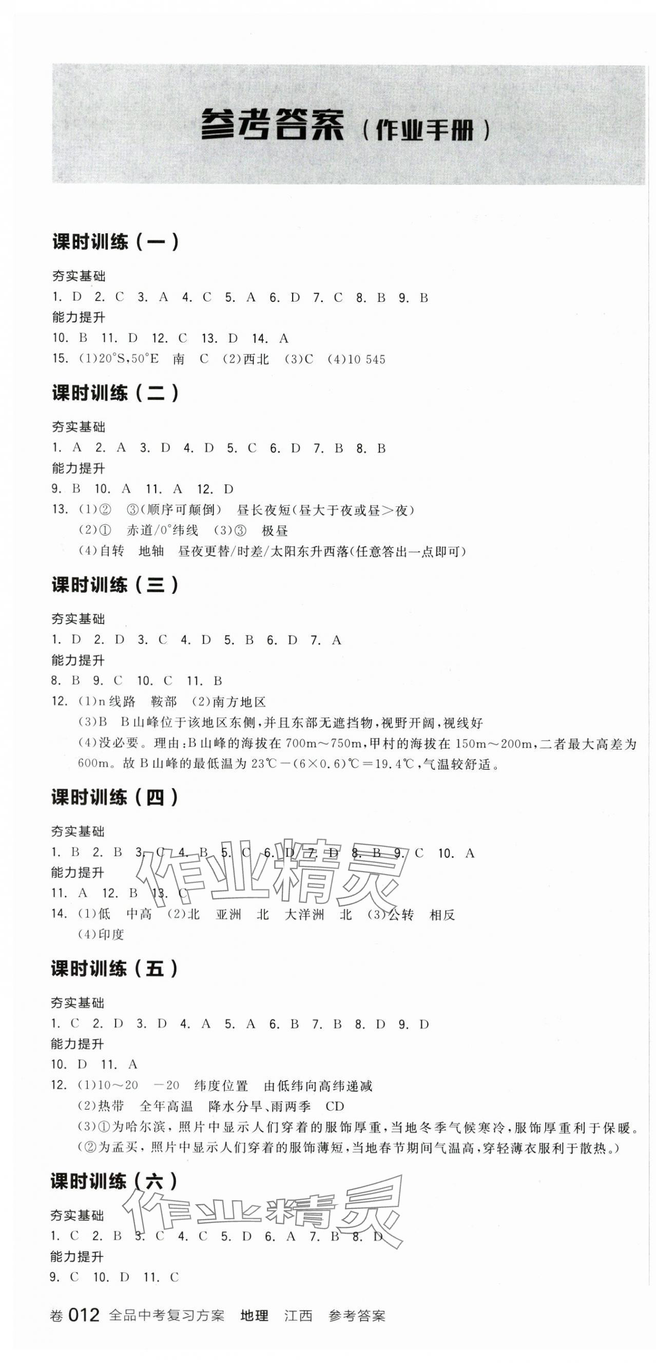 注:目前有些书本章节名称可能整理的还不是很完善,但都是按照顺序排列的,请同学们按照顺序仔细查找。练习册 2024年全品中考复习方案地理江西专版 答案主要是用来给同学们做完题方便对答案用的,请勿直接抄袭。