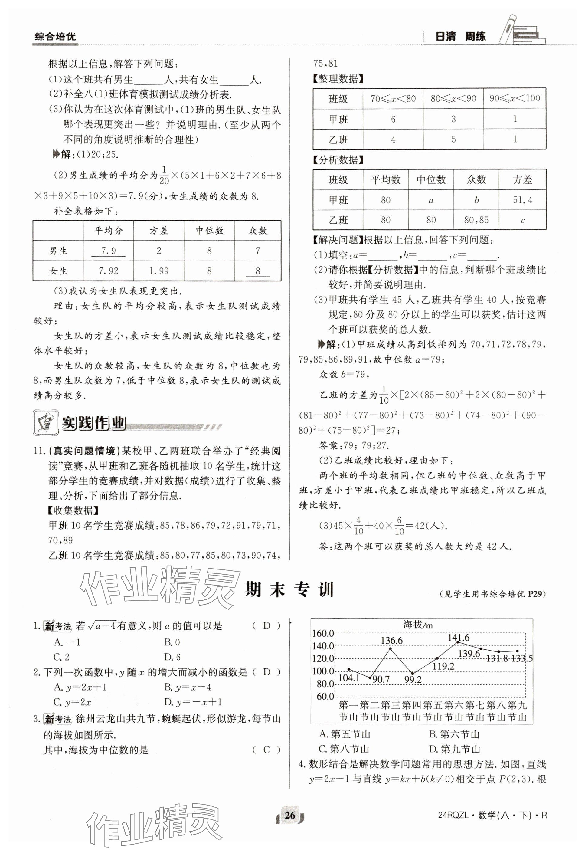 注:目前有些书本章节名称可能整理的还不是很完善,但都是按照顺序排列的,请同学们按照顺序仔细查找。练习册 2024年日清周练八年级数学下册人教版 答案主要是用来给同学们做完题方便对答案用的,请勿直接抄袭。