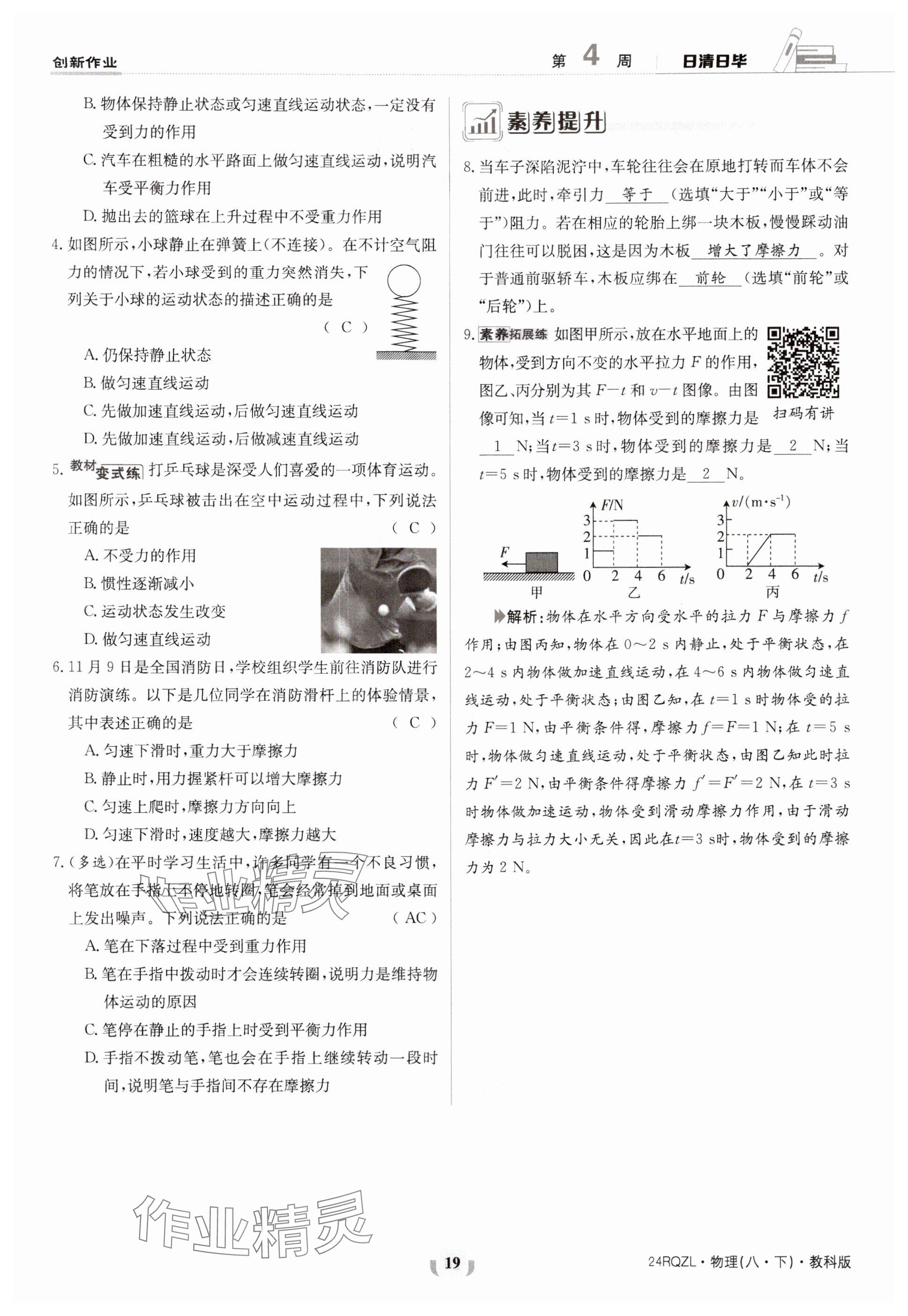 注:目前有些书本章节名称可能整理的还不是很完善,但都是按照顺序排列的,请同学们按照顺序仔细查找。练习册 2024年日清周练八年级物理下册教科版 答案主要是用来给同学们做完题方便对答案用的,请勿直接抄袭。