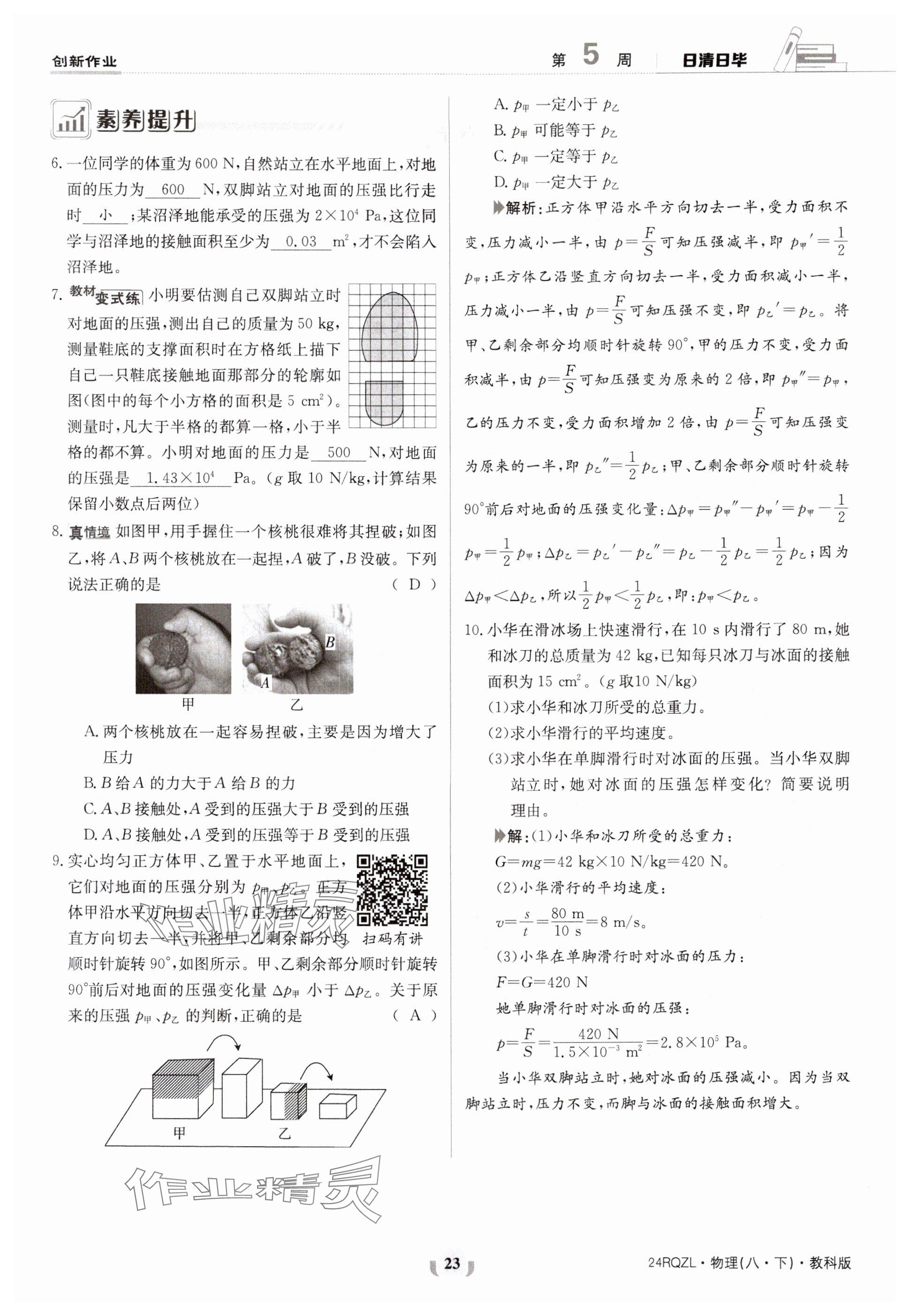 注:目前有些书本章节名称可能整理的还不是很完善,但都是按照顺序排列的,请同学们按照顺序仔细查找。练习册 2024年日清周练八年级物理下册教科版 答案主要是用来给同学们做完题方便对答案用的,请勿直接抄袭。
