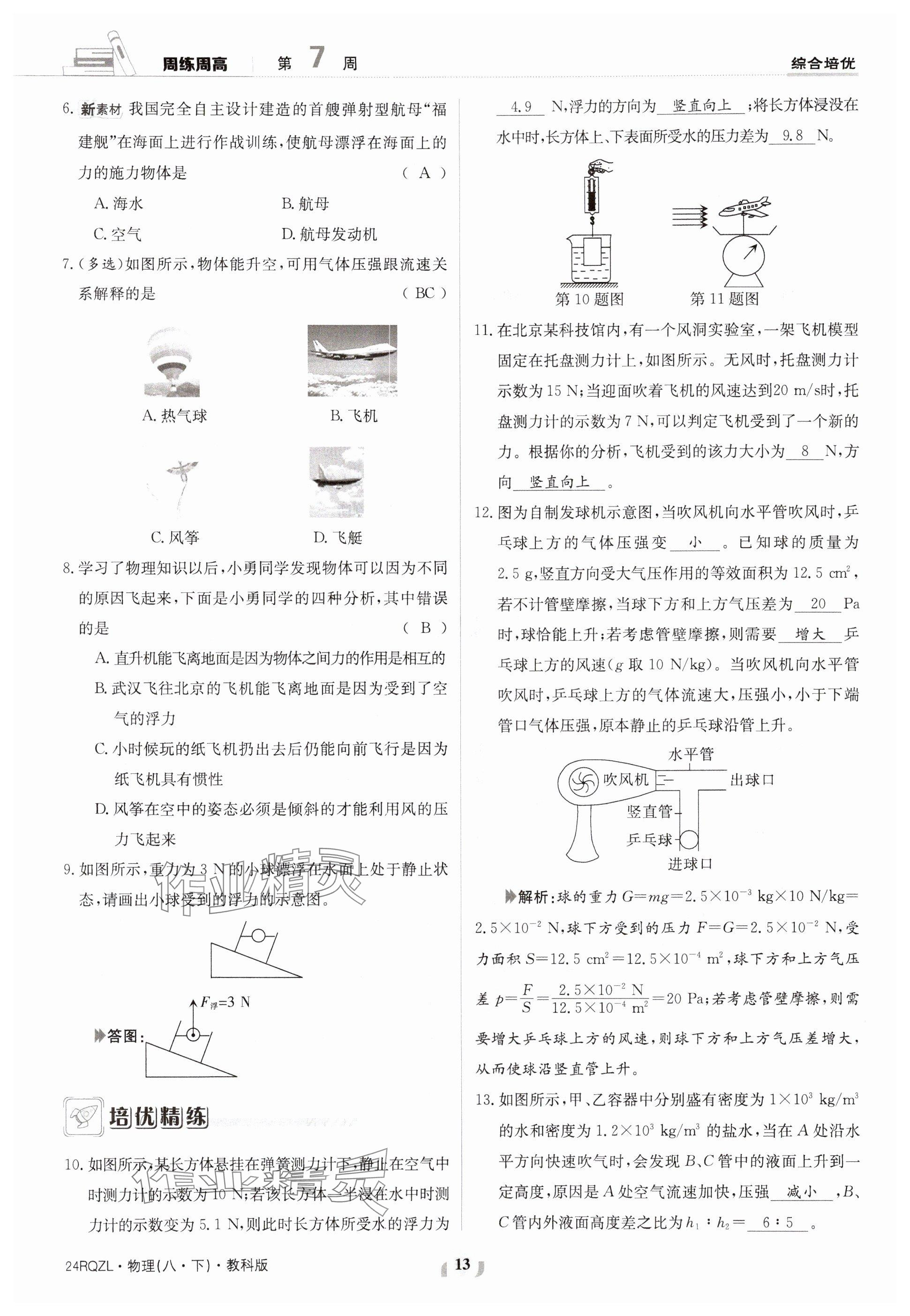 注:目前有些书本章节名称可能整理的还不是很完善,但都是按照顺序排列的,请同学们按照顺序仔细查找。练习册 2024年日清周练八年级物理下册教科版 答案主要是用来给同学们做完题方便对答案用的,请勿直接抄袭。