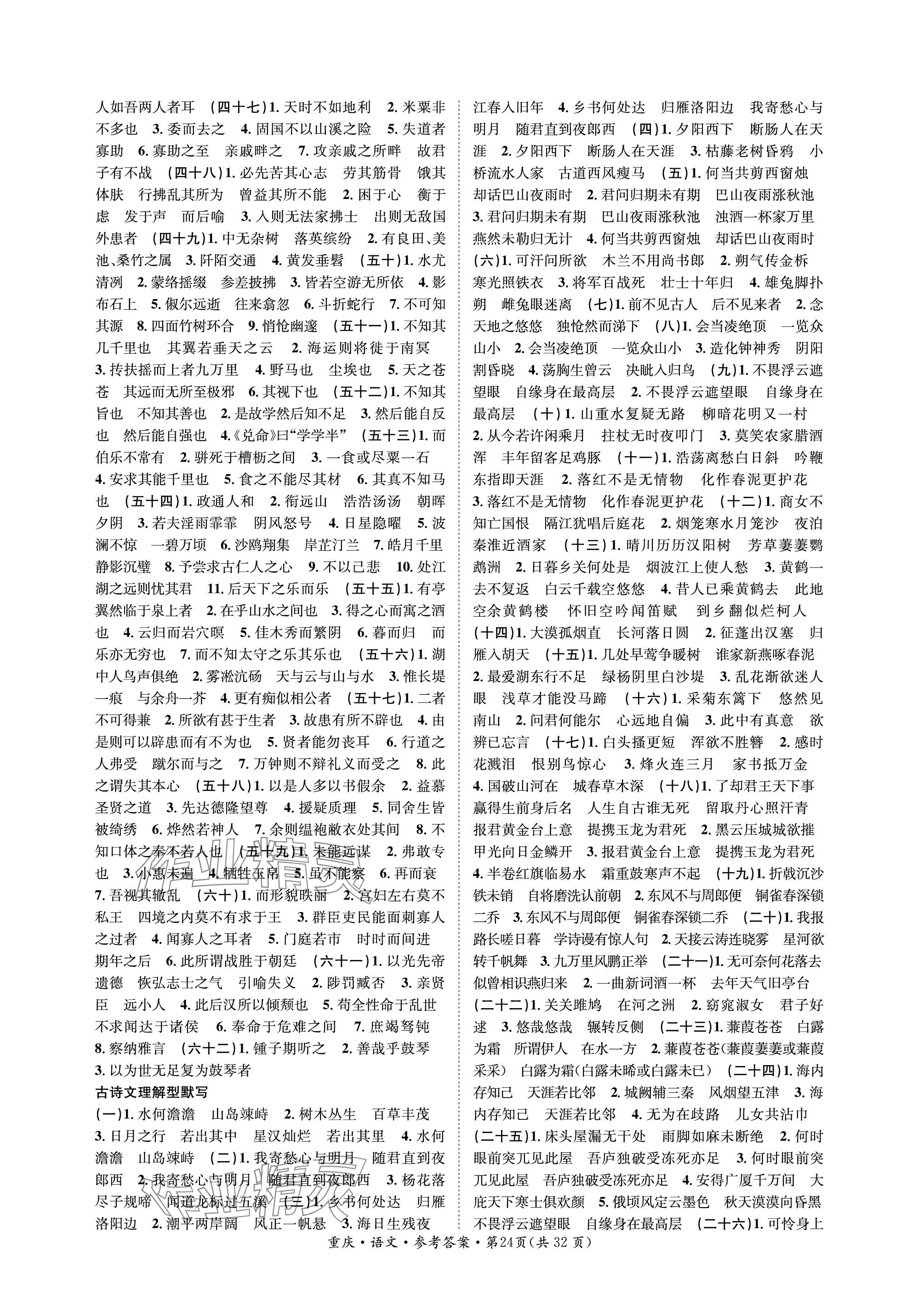 注:目前有些书本章节名称可能整理的还不是很完善,但都是按照顺序排列的,请同学们按照顺序仔细查找。练习册 2024年学本课堂语文中考重庆专版 答案主要是用来给同学们做完题方便对答案用的,请勿直接抄袭。