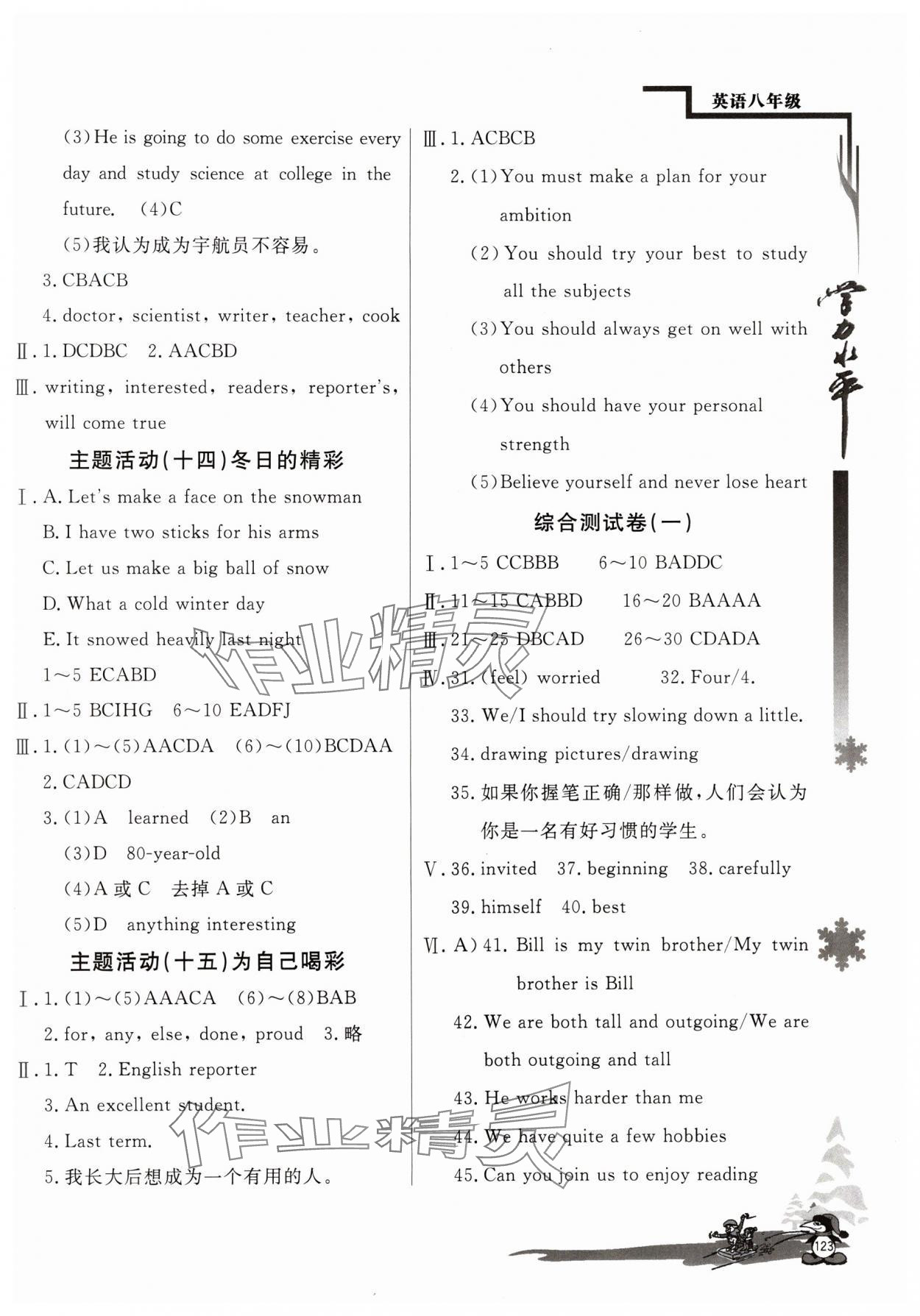 注:目前有些书本章节名称可能整理的还不是很完善,但都是按照顺序排列的,请同学们按照顺序仔细查找。练习册 2024年学力水平快乐假期八年级英语外研版 答案主要是用来给同学们做完题方便对答案用的,请勿直接抄袭。