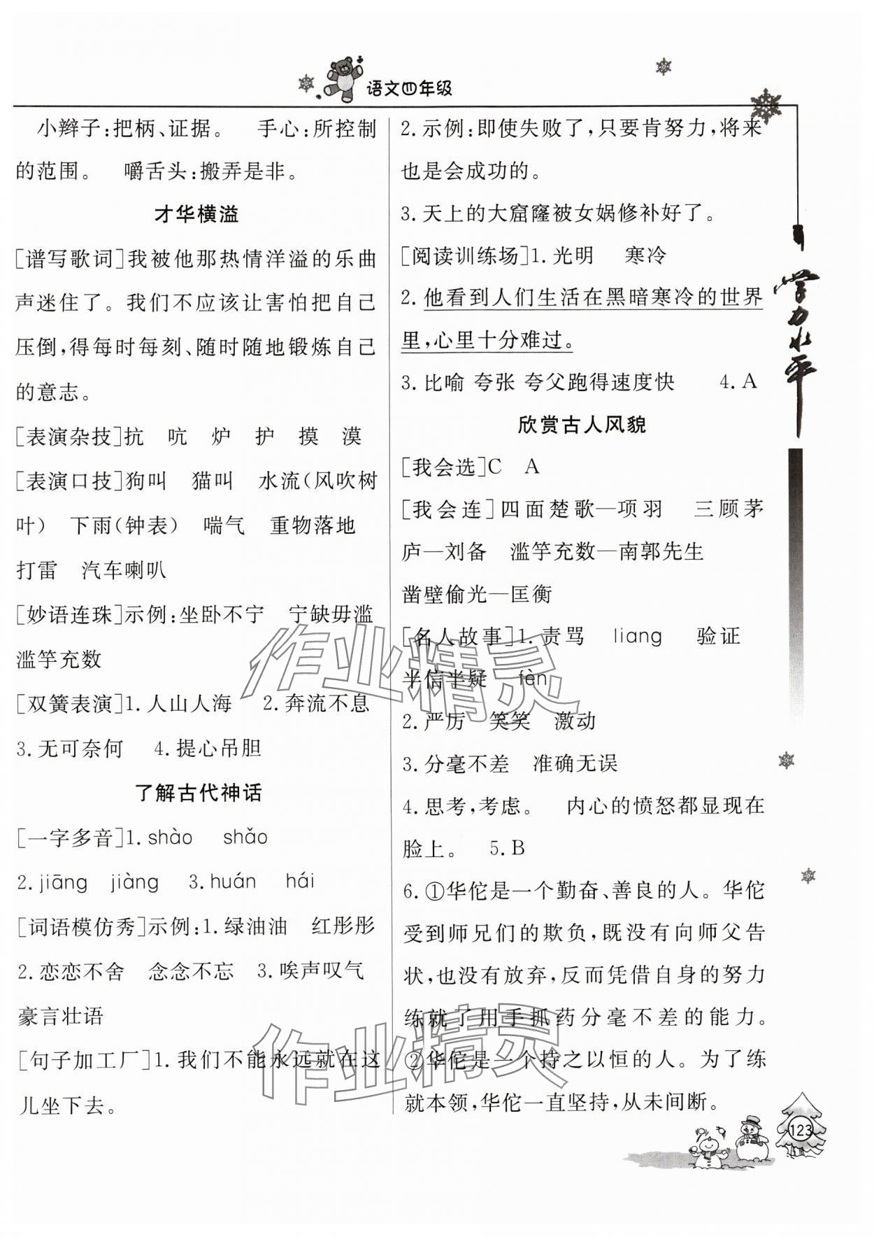 注:目前有些书本章节名称可能整理的还不是很完善,但都是按照顺序排列的,请同学们按照顺序仔细查找。练习册 2024年学力水平快乐假期寒假四年级语文人教版 答案主要是用来给同学们做完题方便对答案用的,请勿直接抄袭。