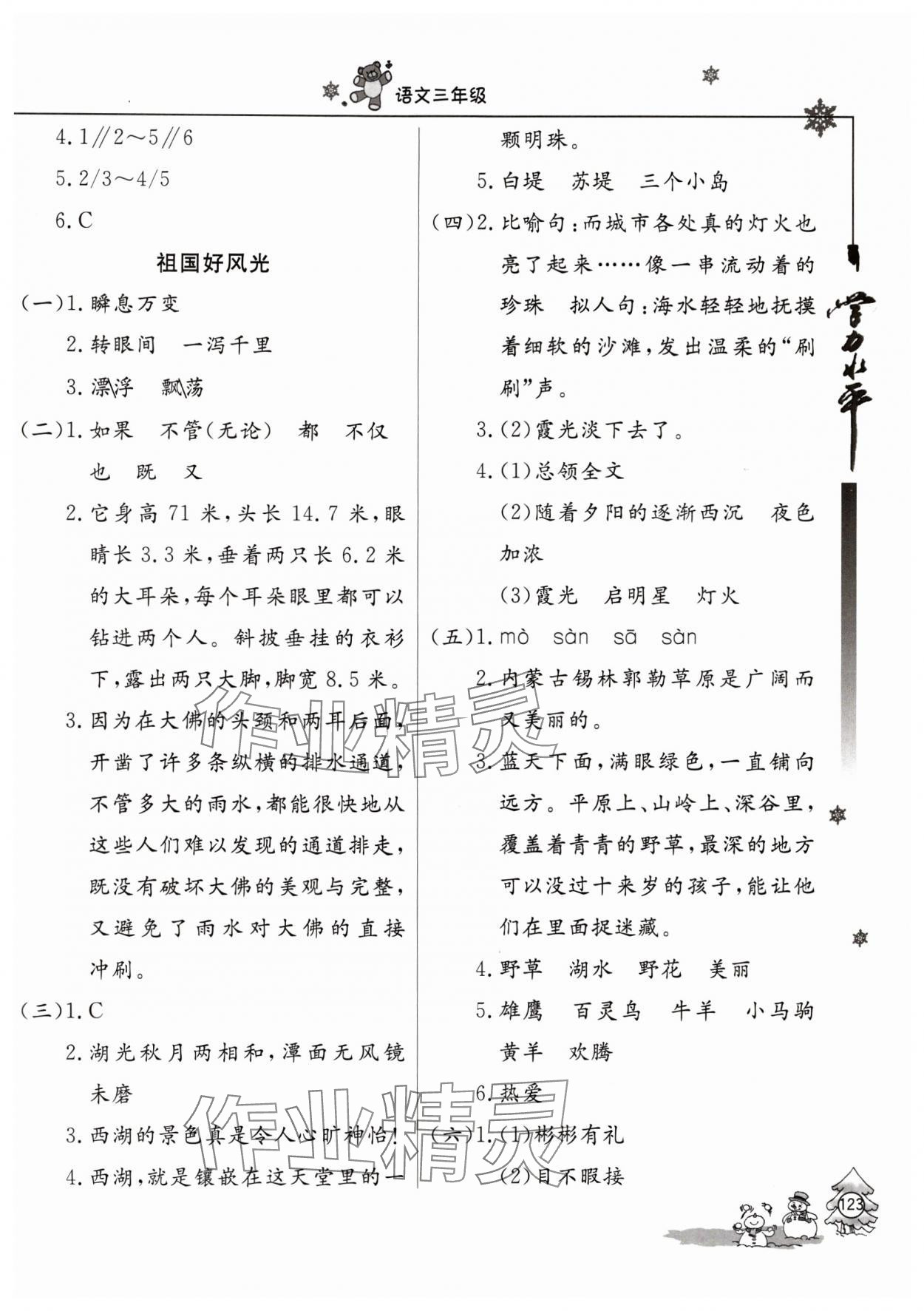注:目前有些书本章节名称可能整理的还不是很完善,但都是按照顺序排列的,请同学们按照顺序仔细查找。练习册 2024年学力水平快乐假期三年级语文人教版 答案主要是用来给同学们做完题方便对答案用的,请勿直接抄袭。