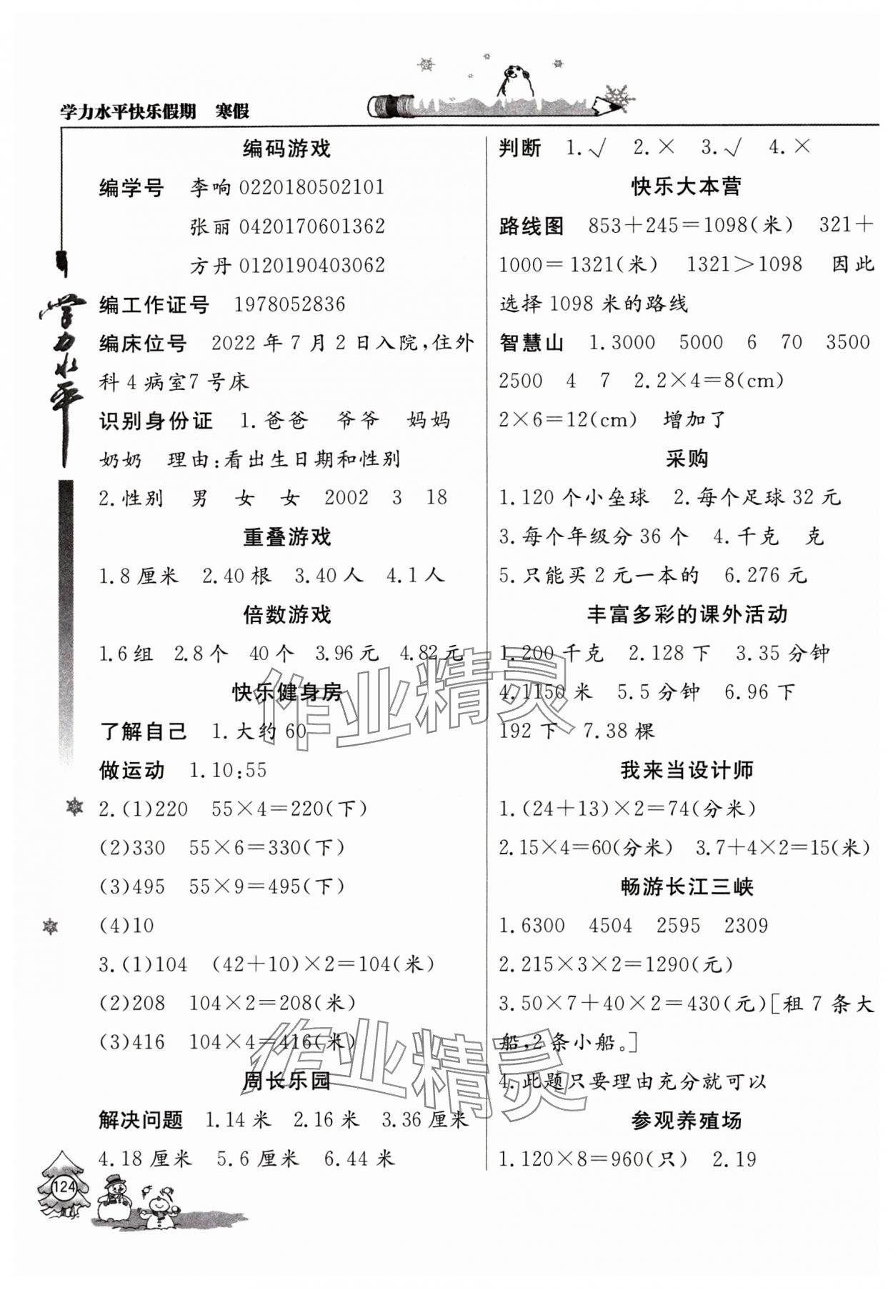 《2024年学力水平快乐假期寒假三年级数学人教版》