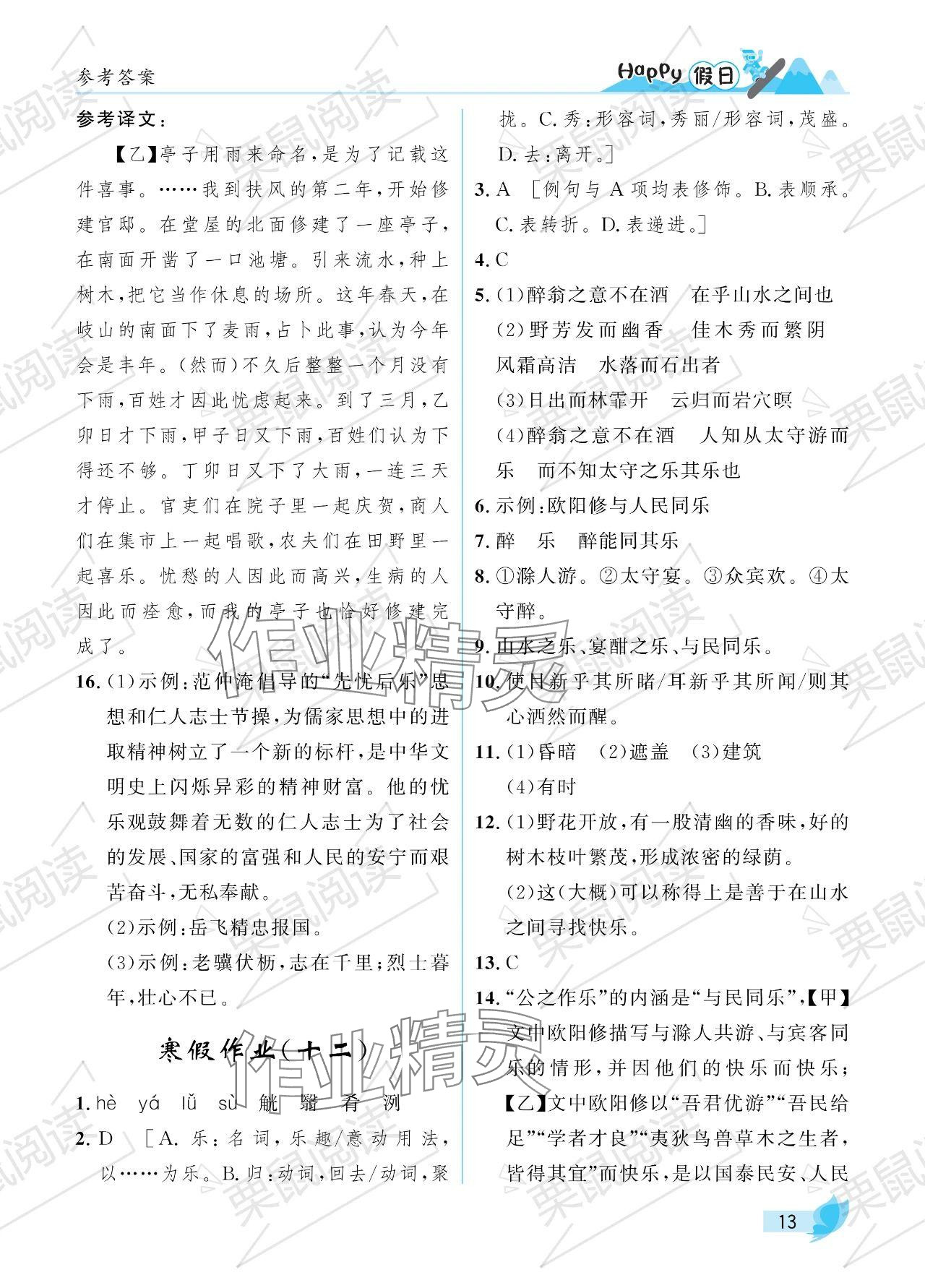 2024年寒假Happy假日九年级文科