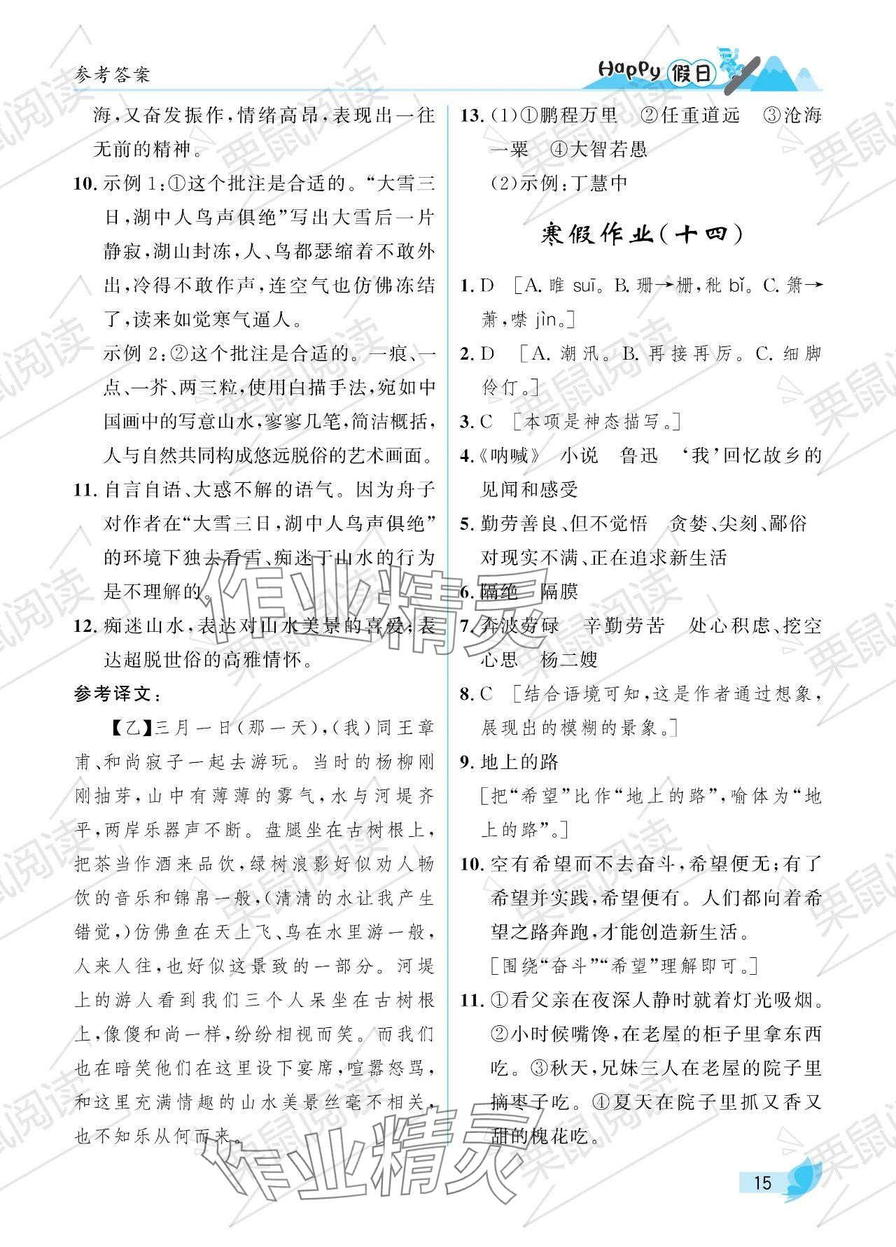 2024年寒假Happy假日九年级文科