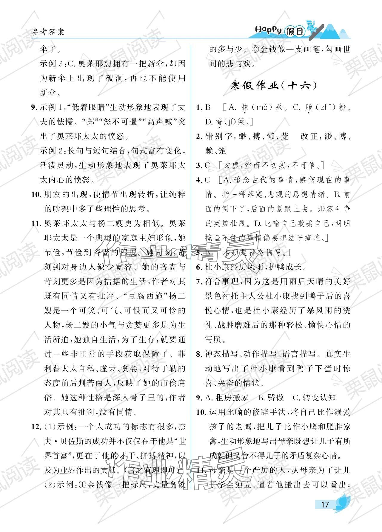 2024年寒假Happy假日九年级文科
