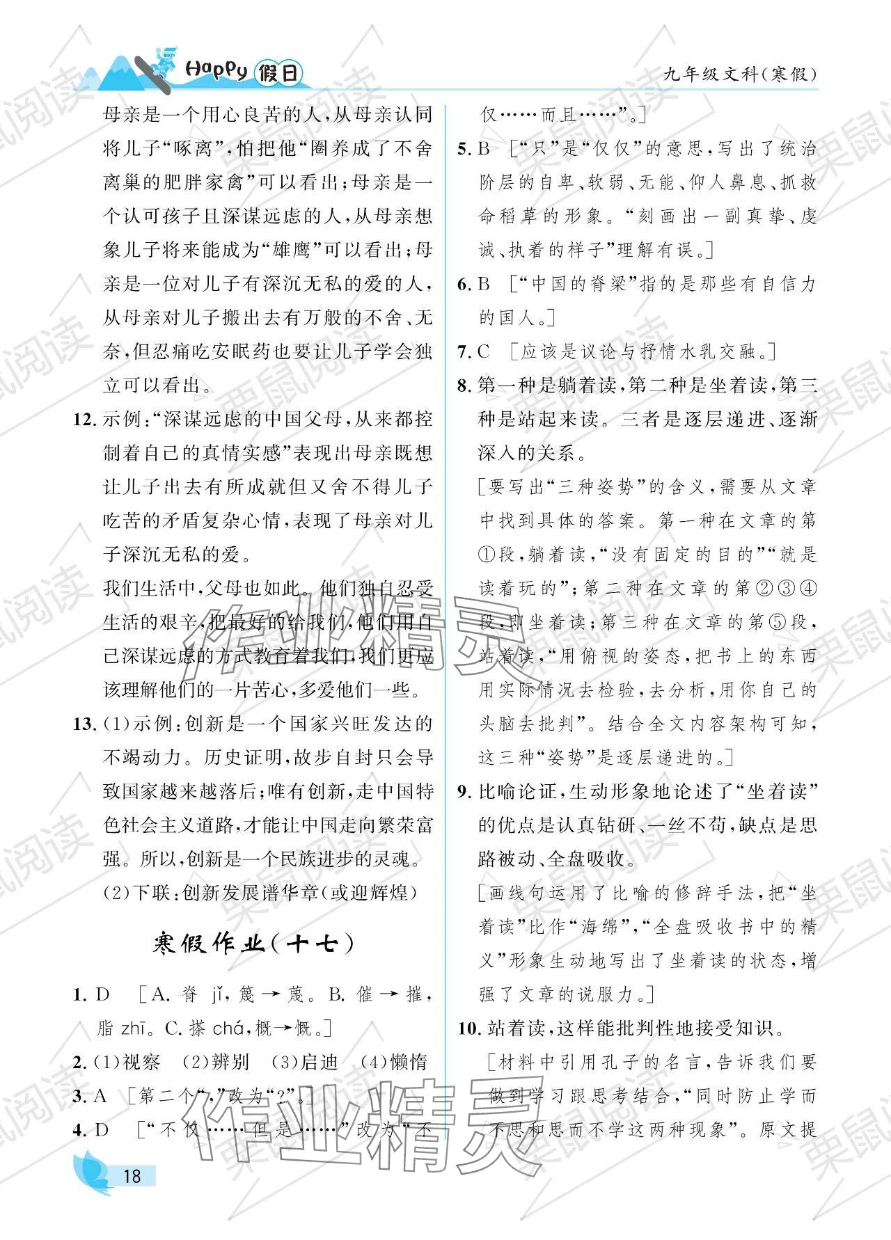 2024年寒假Happy假日九年级文科
