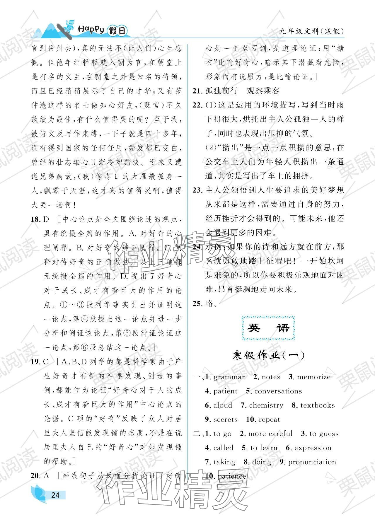 2024年寒假Happy假日九年级文科