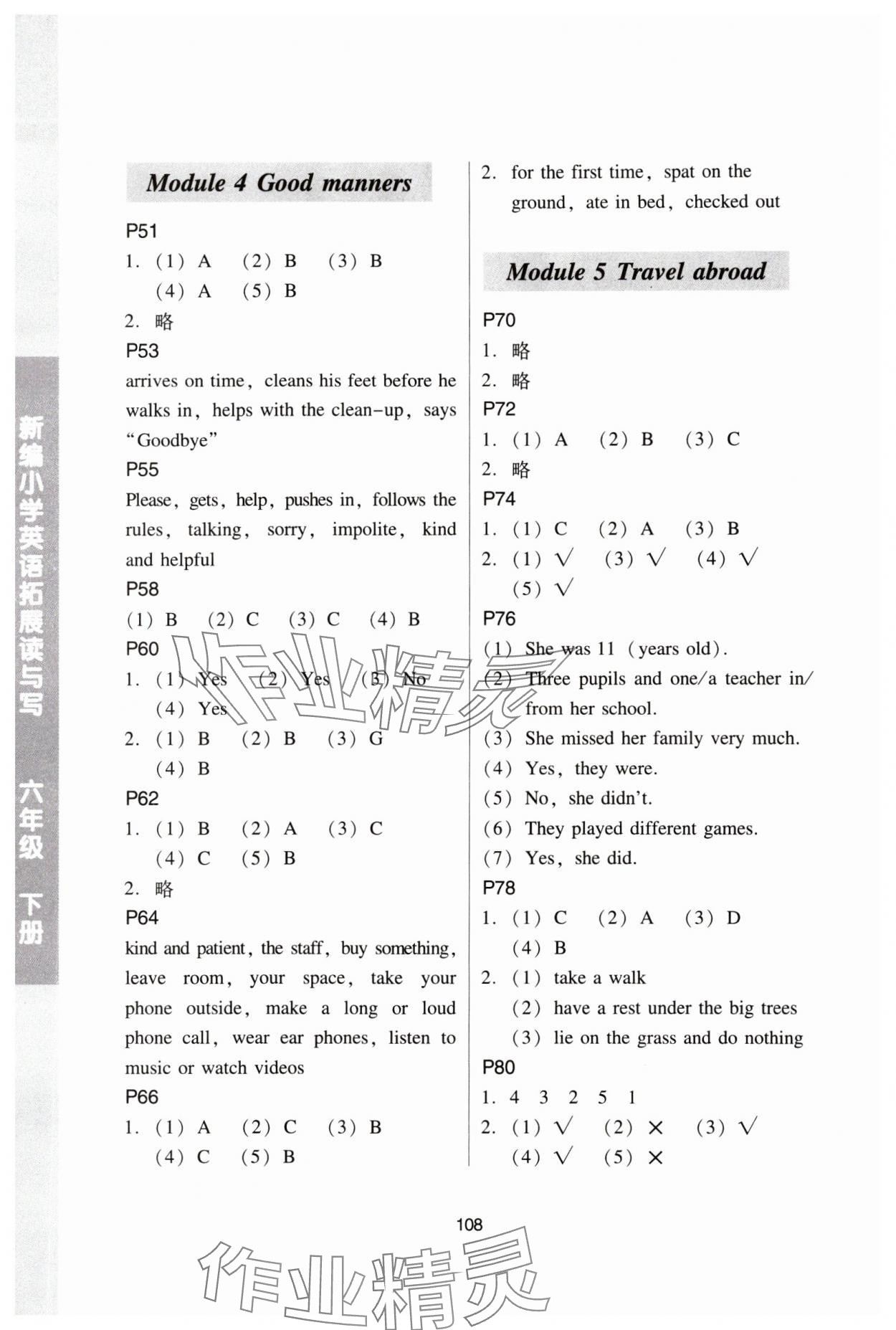 注:目前有些书本章节名称可能整理的还不是很完善,但都是按照顺序排列的,请同学们按照顺序仔细查找。练习册 2024年拓展读与写六年级英语下册教科版 答案主要是用来给同学们做完题方便对答案用的,请勿直接抄袭。