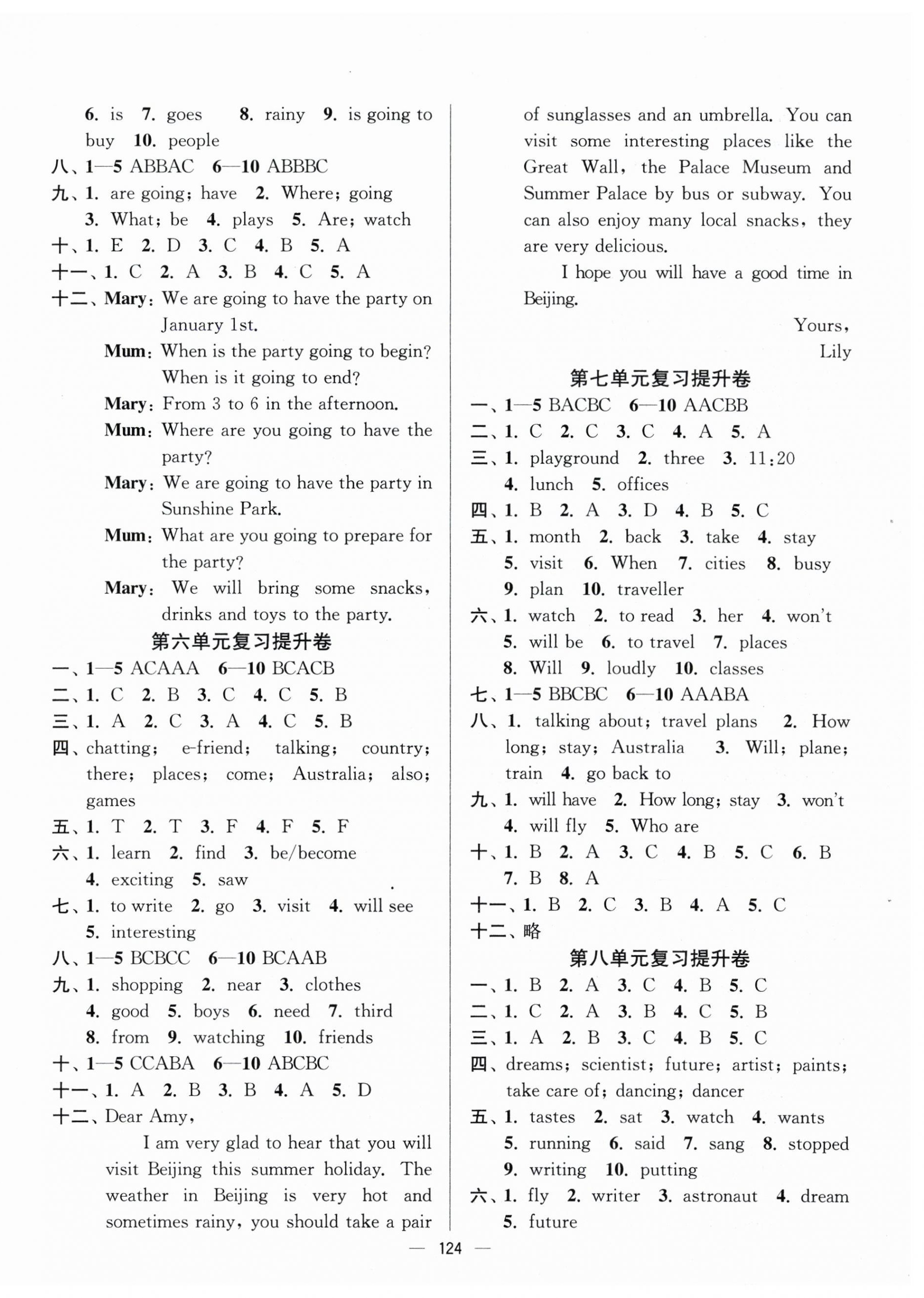 注:目前有些书本章节名称可能整理的还不是很完善,但都是按照顺序排列的,请同学们按照顺序仔细查找。练习册 2024年江苏好卷六年级英语下册译林版 答案主要是用来给同学们做完题方便对答案用的,请勿直接抄袭。