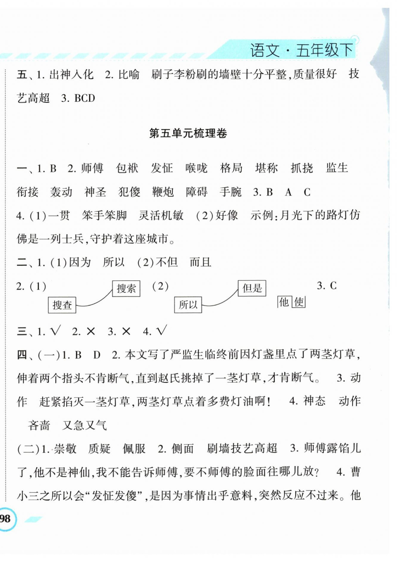注:目前有些书本章节名称可能整理的还不是很完善,但都是按照顺序排列的,请同学们按照顺序仔细查找。练习册 2024年经纶学典课时作业五年级语文下册人教版 答案主要是用来给同学们做完题方便对答案用的,请勿直接抄袭。