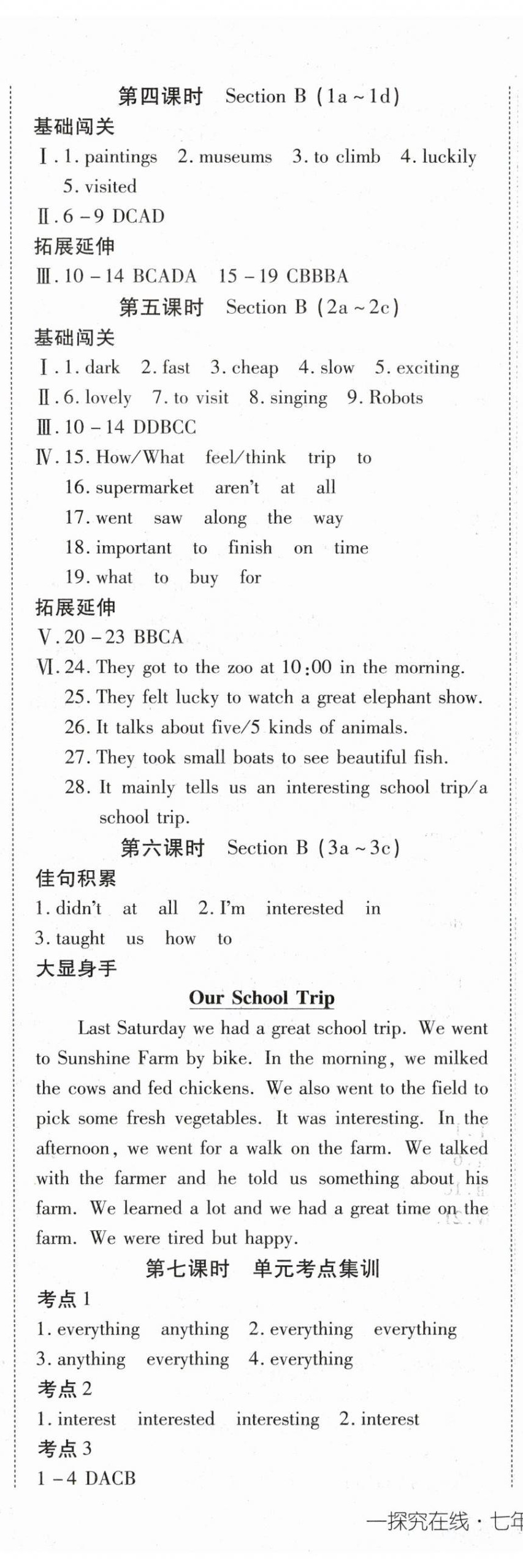 注:目前有些书本章节名称可能整理的还不是很完善,但都是按照顺序排列的,请同学们按照顺序仔细查找。练习册 2024年探究在线高效课堂七年级英语下册人教版 答案主要是用来给同学们做完题方便对答案用的,请勿直接抄袭。