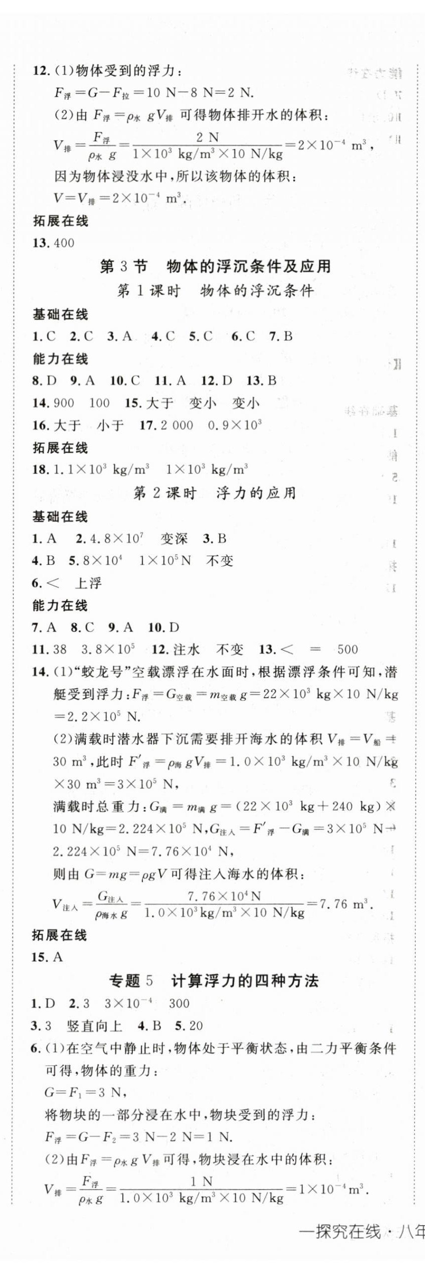 注:目前有些书本章节名称可能整理的还不是很完善,但都是按照顺序排列的,请同学们按照顺序仔细查找。练习册 2024年探究在线高效课堂八年级物理下册人教版 答案主要是用来给同学们做完题方便对答案用的,请勿直接抄袭。