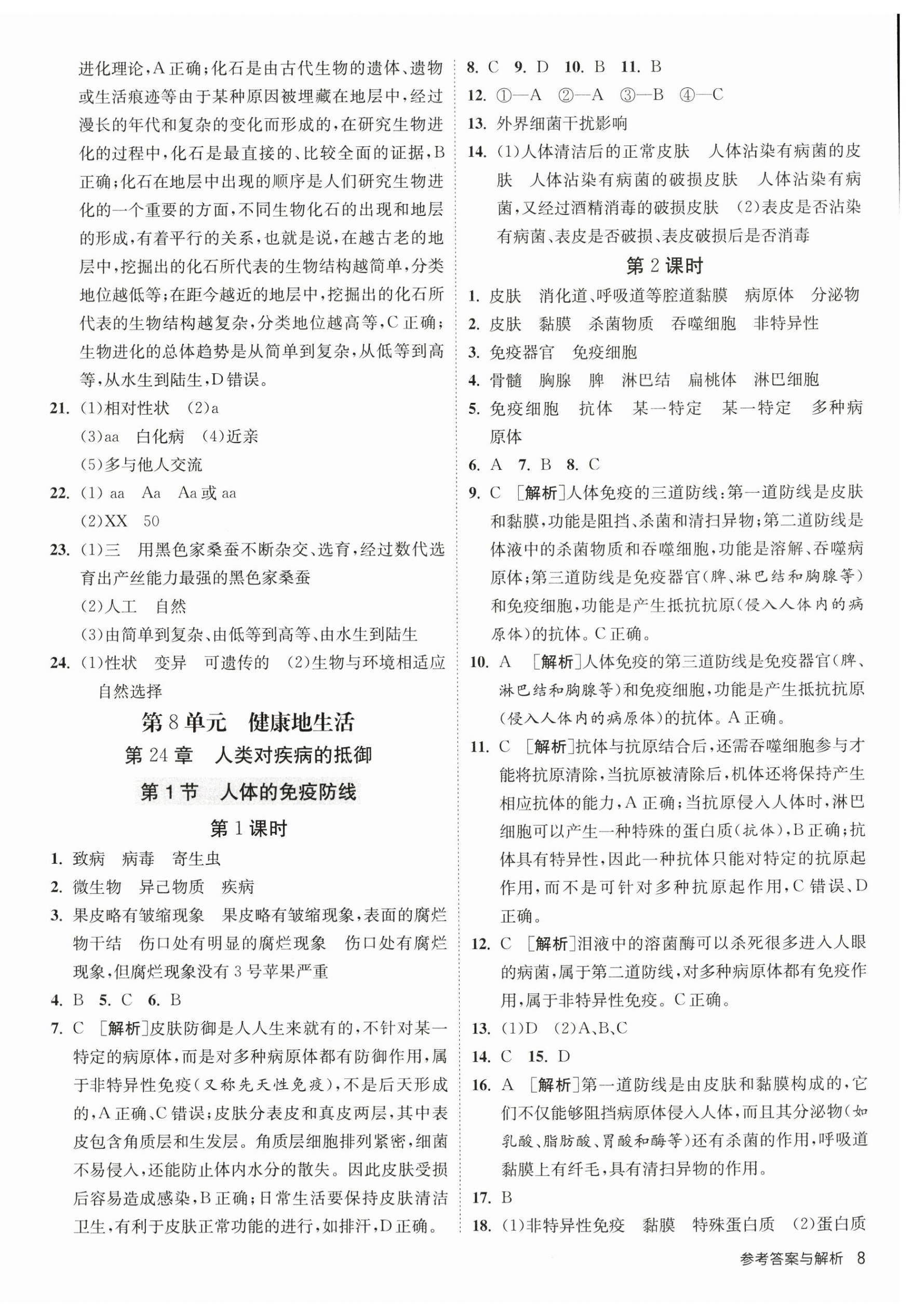 注:目前有些书本章节名称可能整理的还不是很完善,但都是按照顺序排列的,请同学们按照顺序仔细查找。练习册 2024年1课3练单元达标测试八年级生物下册苏科版 答案主要是用来给同学们做完题方便对答案用的,请勿直接抄袭。