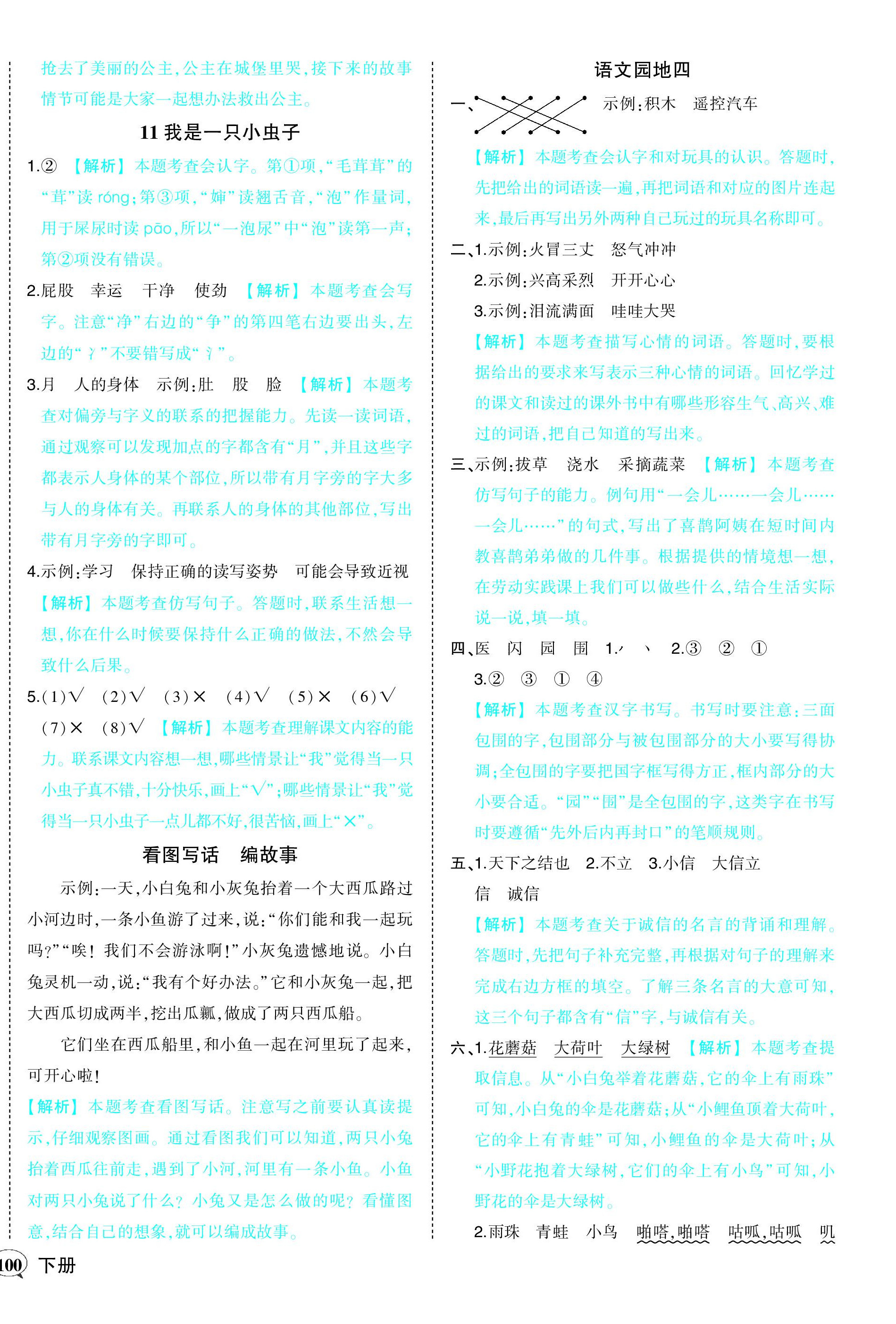 注:目前有些书本章节名称可能整理的还不是很完善,但都是按照顺序排列的,请同学们按照顺序仔细查找。练习册 2024年黄冈状元成才路状元作业本二年级语文下册人教版 答案主要是用来给同学们做完题方便对答案用的,请勿直接抄袭。