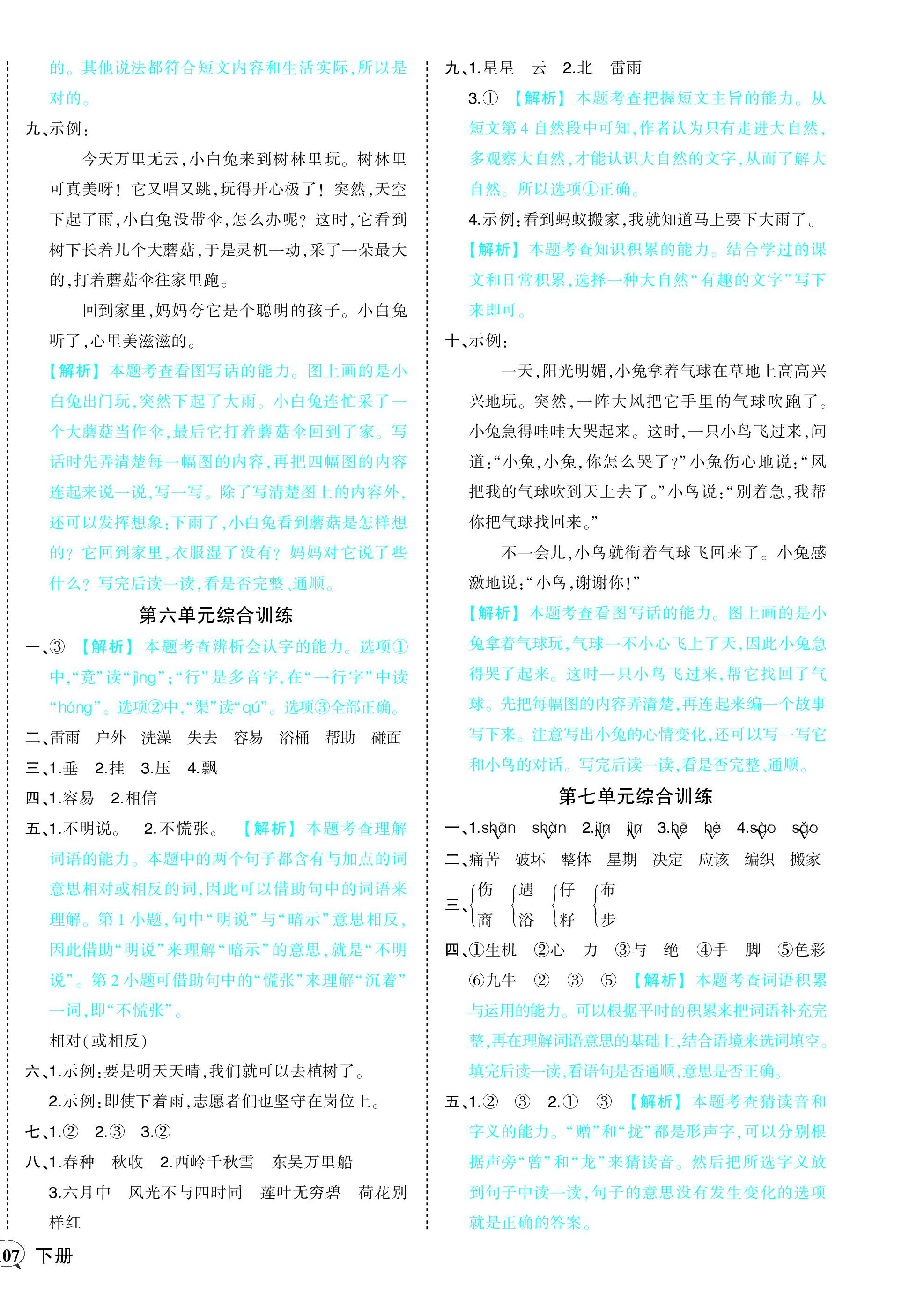 注:目前有些书本章节名称可能整理的还不是很完善,但都是按照顺序排列的,请同学们按照顺序仔细查找。练习册 2024年黄冈状元成才路状元作业本二年级语文下册人教版 答案主要是用来给同学们做完题方便对答案用的,请勿直接抄袭。