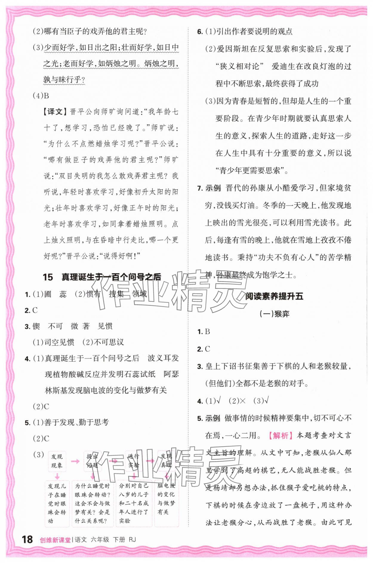 注:目前有些书本章节名称可能整理的还不是很完善,但都是按照顺序排列的,请同学们按照顺序仔细查找。练习册 2024年创维新课堂六年级语文下册人教版 答案主要是用来给同学们做完题方便对答案用的,请勿直接抄袭。