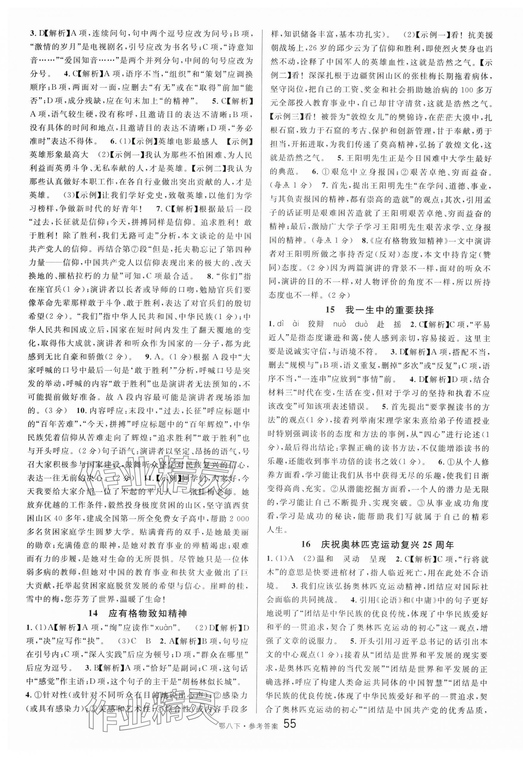注:目前有些书本章节名称可能整理的还不是很完善,但都是按照顺序排列的,请同学们按照顺序仔细查找。练习册 2024年名校课堂八年级语文下册人教版湖北专版 答案主要是用来给同学们做完题方便对答案用的,请勿直接抄袭。