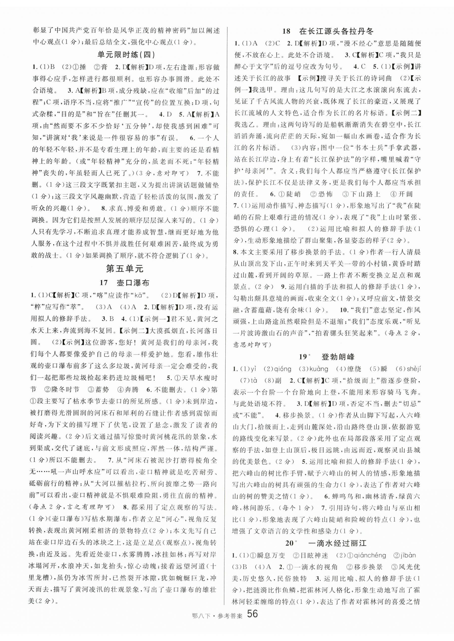 注:目前有些书本章节名称可能整理的还不是很完善,但都是按照顺序排列的,请同学们按照顺序仔细查找。练习册 2024年名校课堂八年级语文下册人教版湖北专版 答案主要是用来给同学们做完题方便对答案用的,请勿直接抄袭。