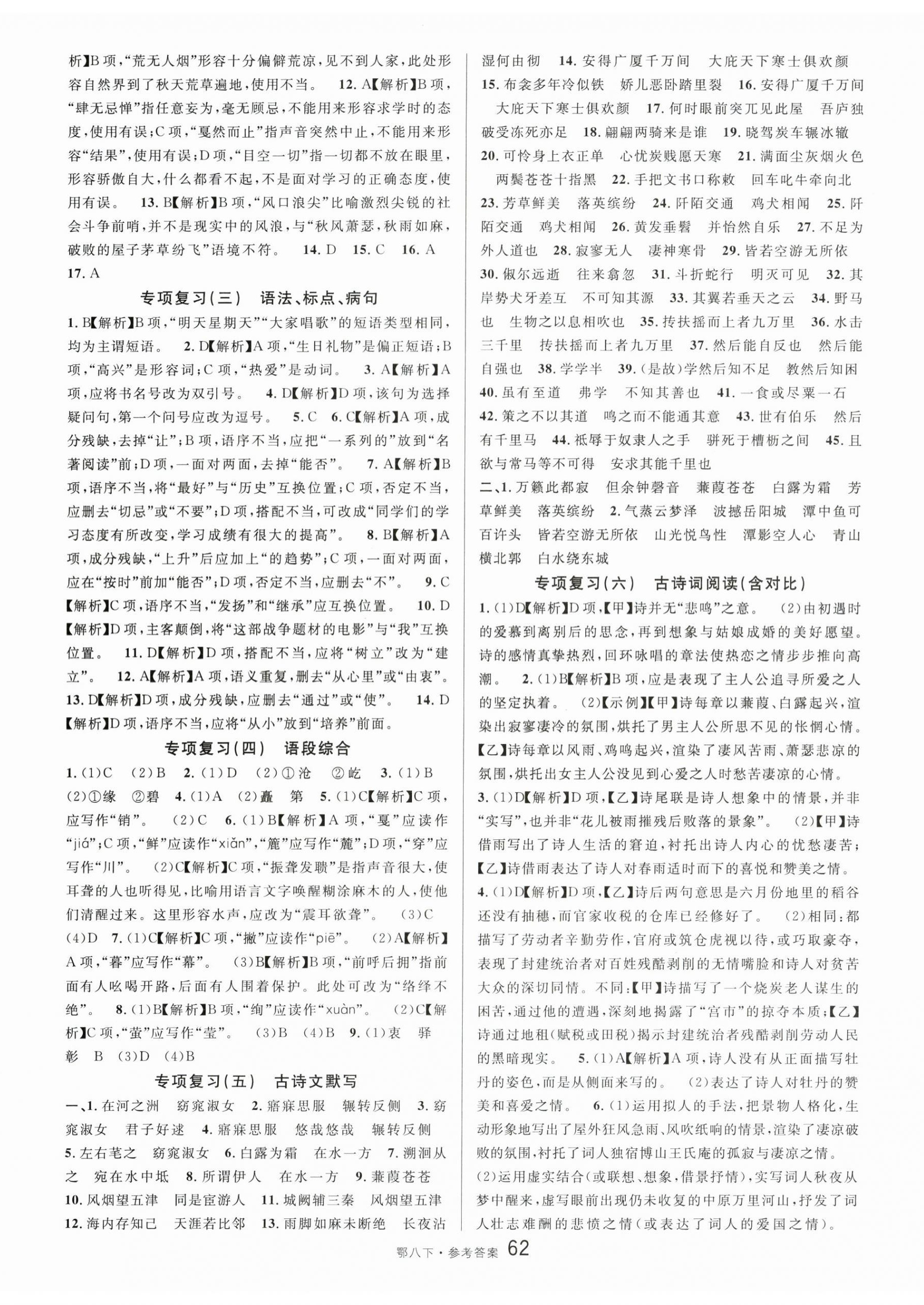 注:目前有些书本章节名称可能整理的还不是很完善,但都是按照顺序排列的,请同学们按照顺序仔细查找。练习册 2024年名校课堂八年级语文下册人教版湖北专版 答案主要是用来给同学们做完题方便对答案用的,请勿直接抄袭。