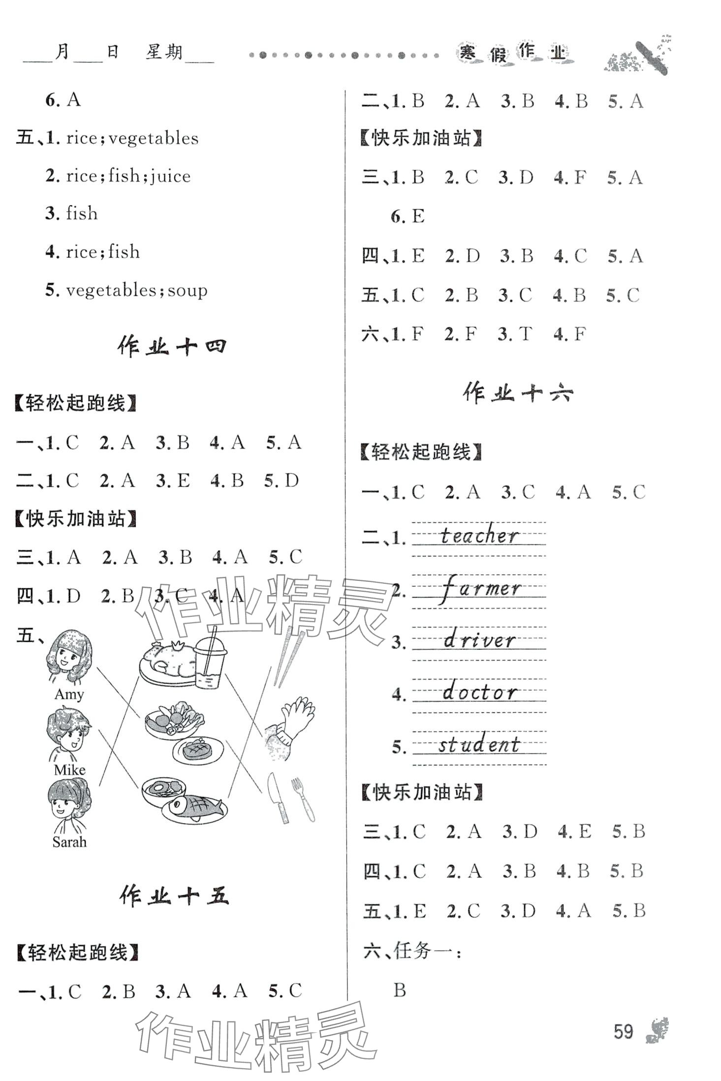 2024年蓝博士寒假作业甘肃少年儿童出版社四年级英语人教版