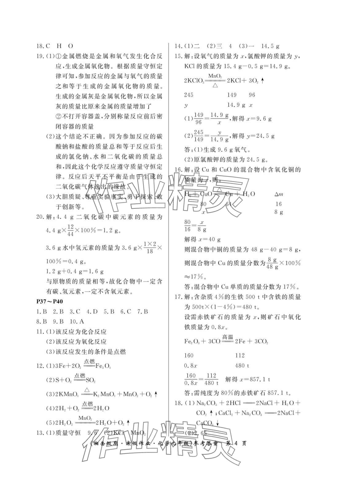 2024年湘岳假期寒假作业九年级化学