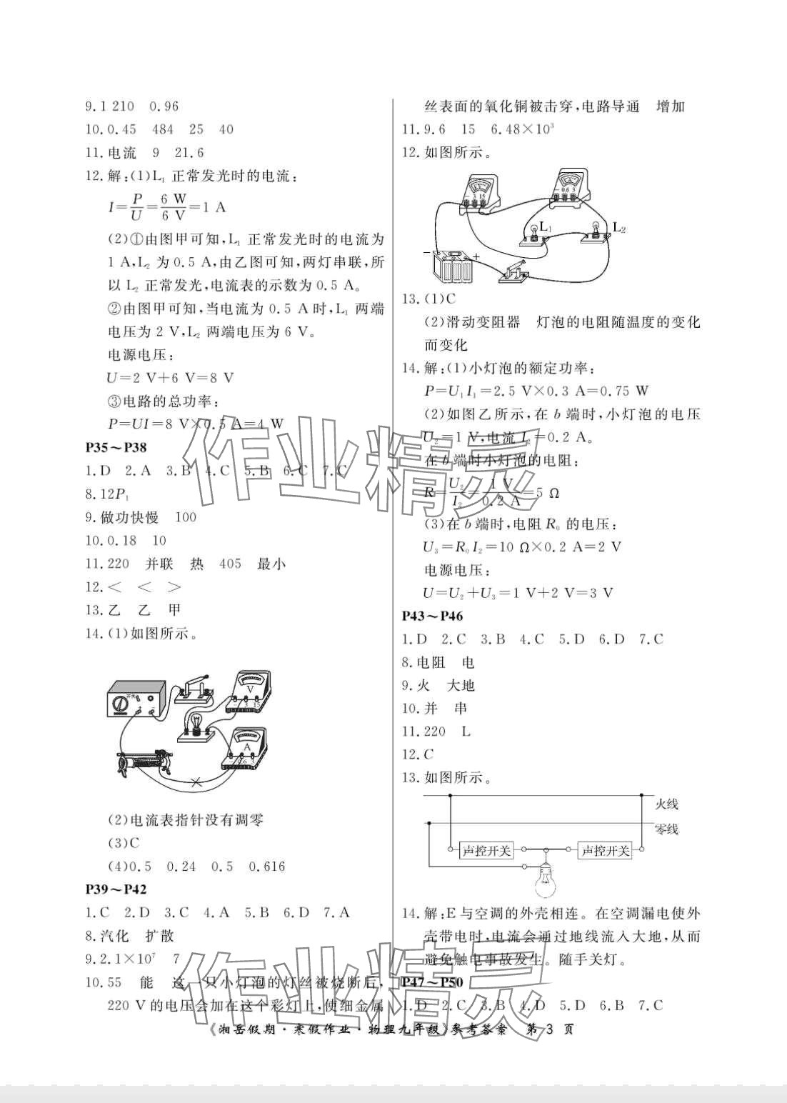 注:目前有些书本章节名称可能整理的还不是很完善,但都是按照顺序排列的,请同学们按照顺序仔细查找。练习册 2024年湘岳假期寒假作业九年级物理人教版 答案主要是用来给同学们做完题方便对答案用的,请勿直接抄袭。