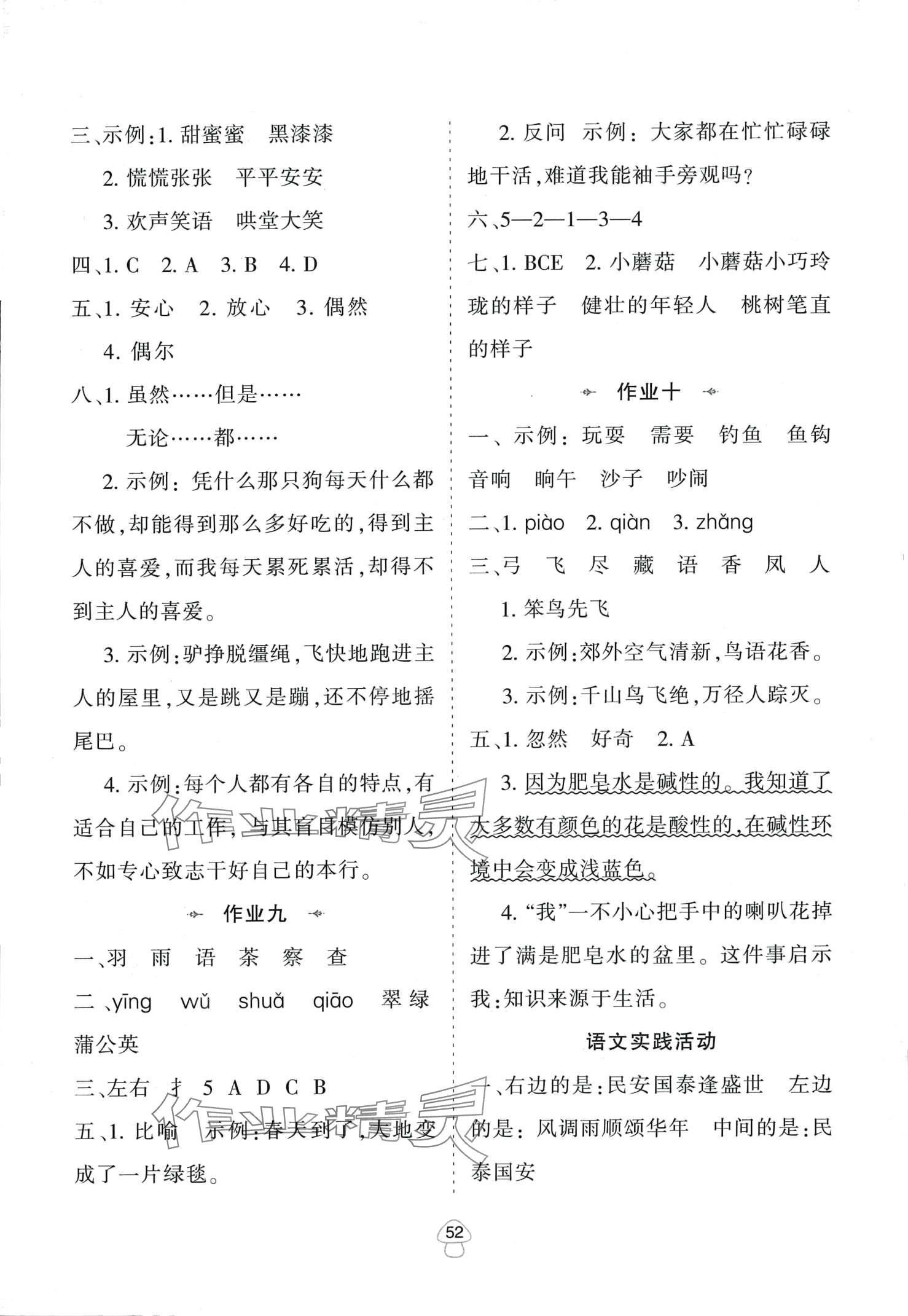 《2024年寒假作业陕西人民教育出版社三年级语文》