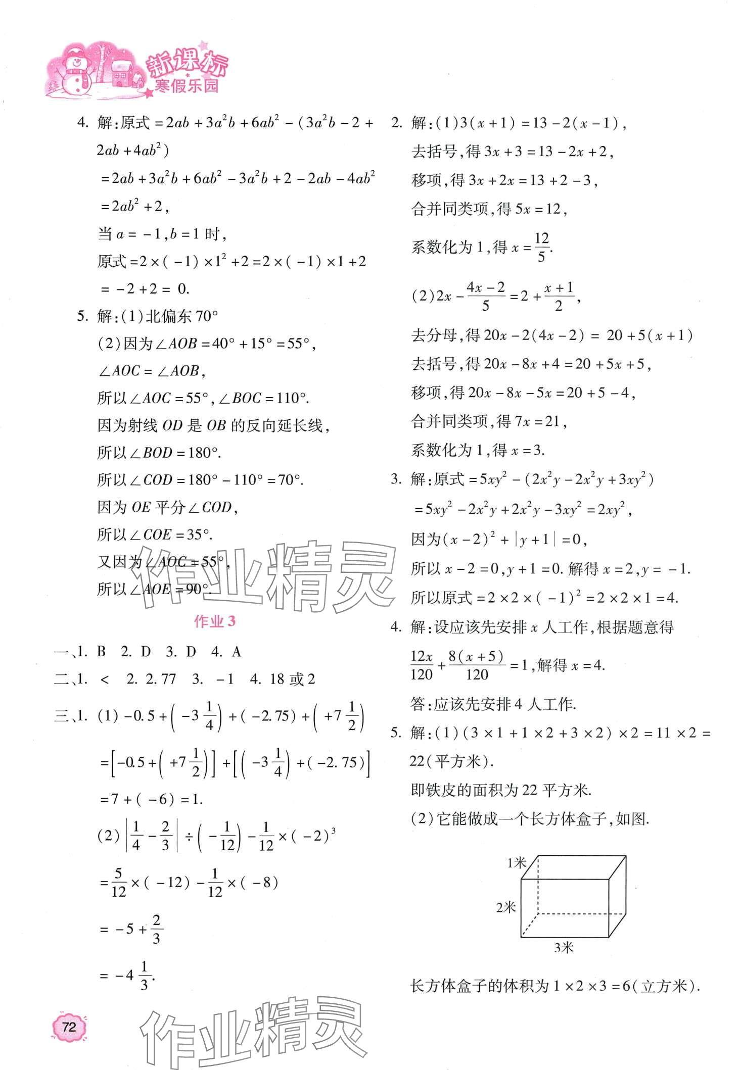 注:目前有些书本章节名称可能整理的还不是很完善,但都是按照顺序排列的,请同学们按照顺序仔细查找。练习册 2024年新课标寒假乐园七年级数学 答案主要是用来给同学们做完题方便对答案用的,请勿直接抄袭。