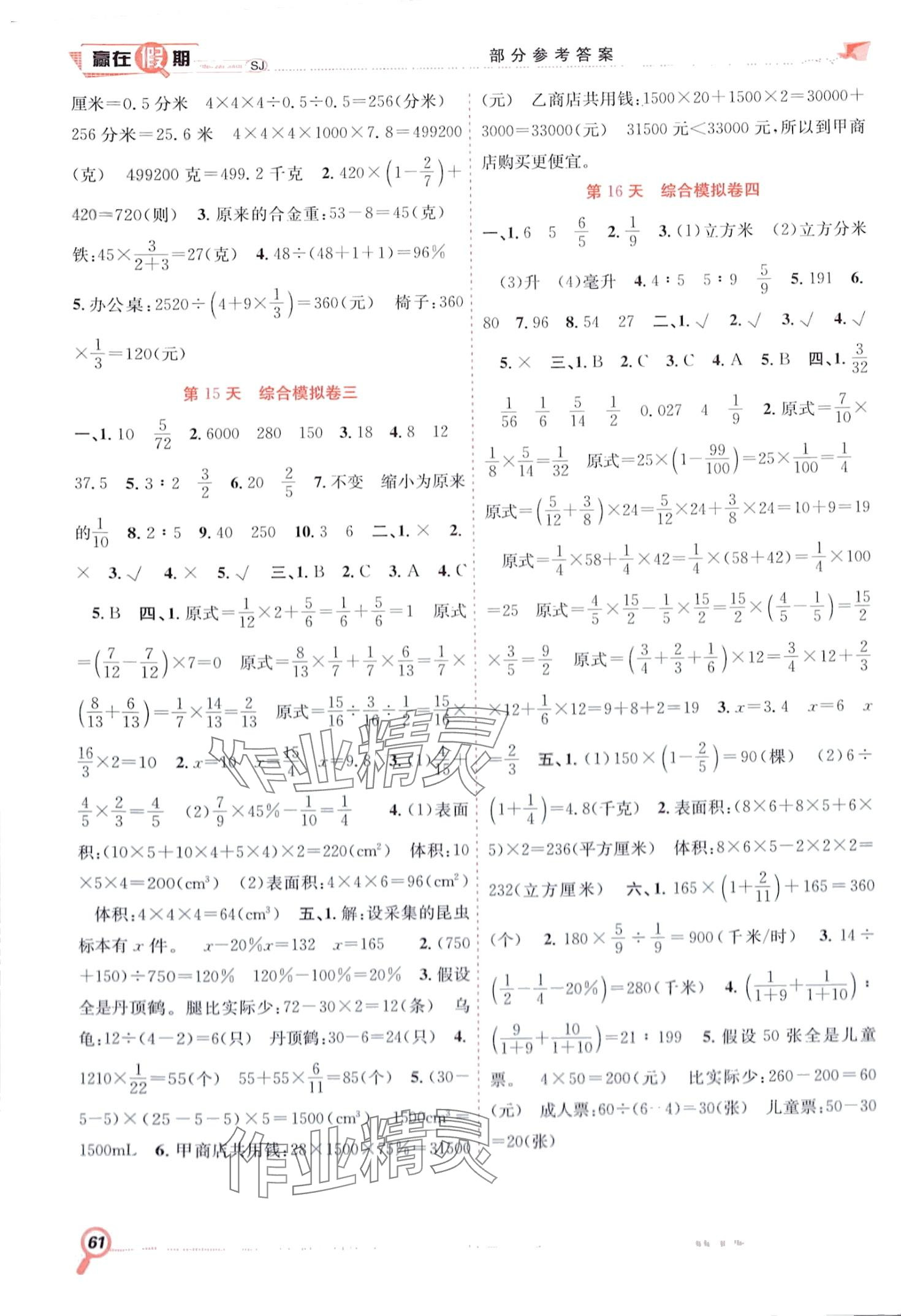2024年赢在假期期末加寒假合肥工业大学出版社六年级数学苏教版