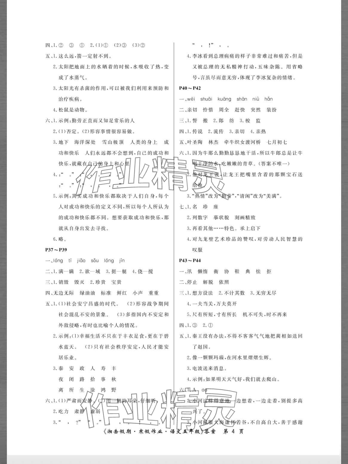 注:目前有些书本章节名称可能整理的还不是很完善,但都是按照顺序排列的,请同学们按照顺序仔细查找。练习册 2024年湘岳假期寒假作业五年级语文人教版 答案主要是用来给同学们做完题方便对答案用的,请勿直接抄袭。
