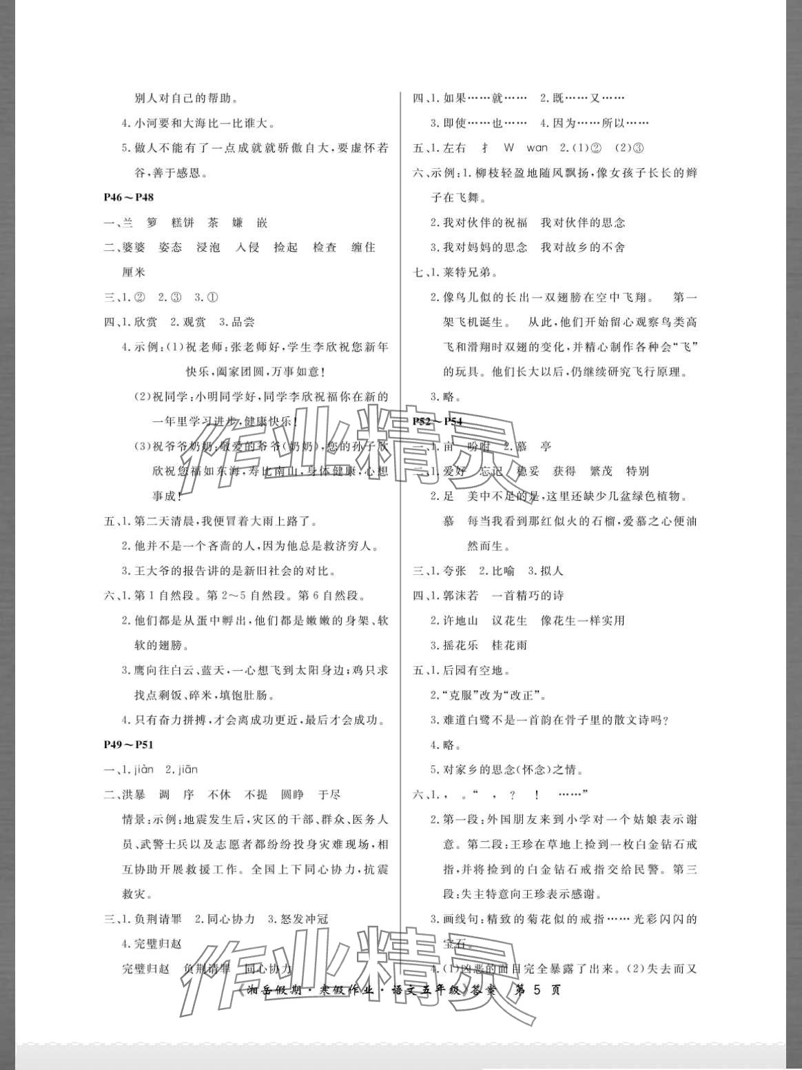 注:目前有些书本章节名称可能整理的还不是很完善,但都是按照顺序排列的,请同学们按照顺序仔细查找。练习册 2024年湘岳假期寒假作业五年级语文人教版 答案主要是用来给同学们做完题方便对答案用的,请勿直接抄袭。