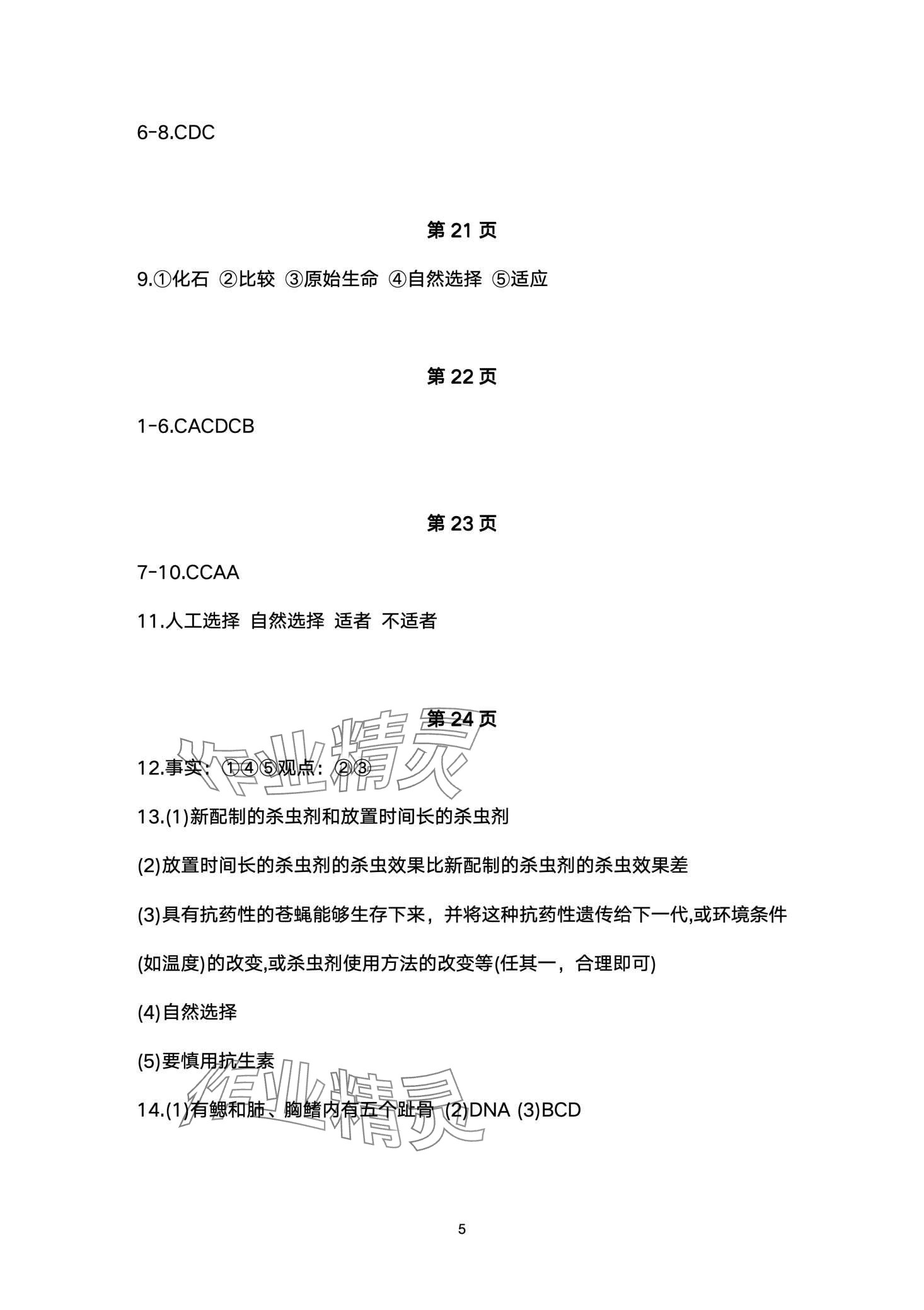 注:目前有些书本章节名称可能整理的还不是很完善,但都是按照顺序排列的,请同学们按照顺序仔细查找。练习册 2024年寒假作业安徽教育出版社八年级生物苏教版 答案主要是用来给同学们做完题方便对答案用的,请勿直接抄袭。