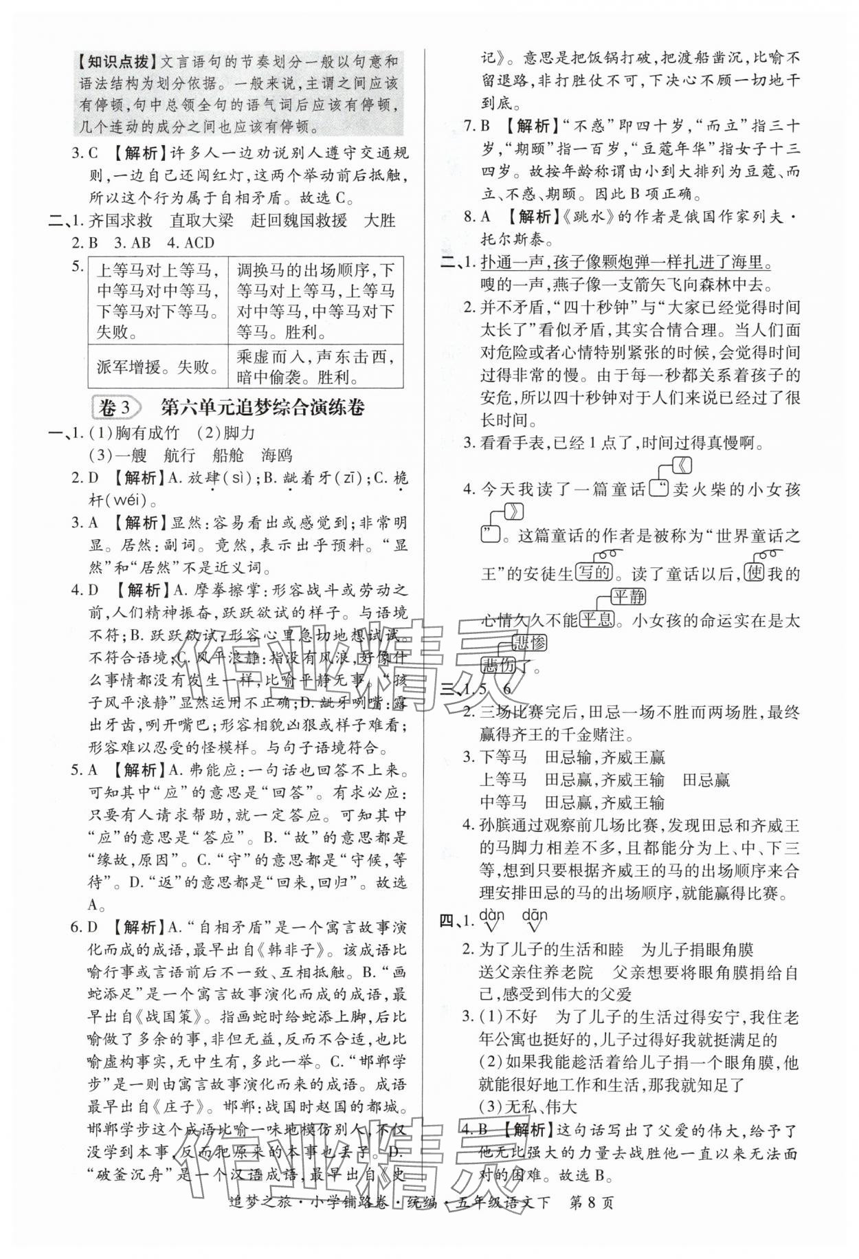 2024年追梦之旅铺路卷五年级语文下册人教版