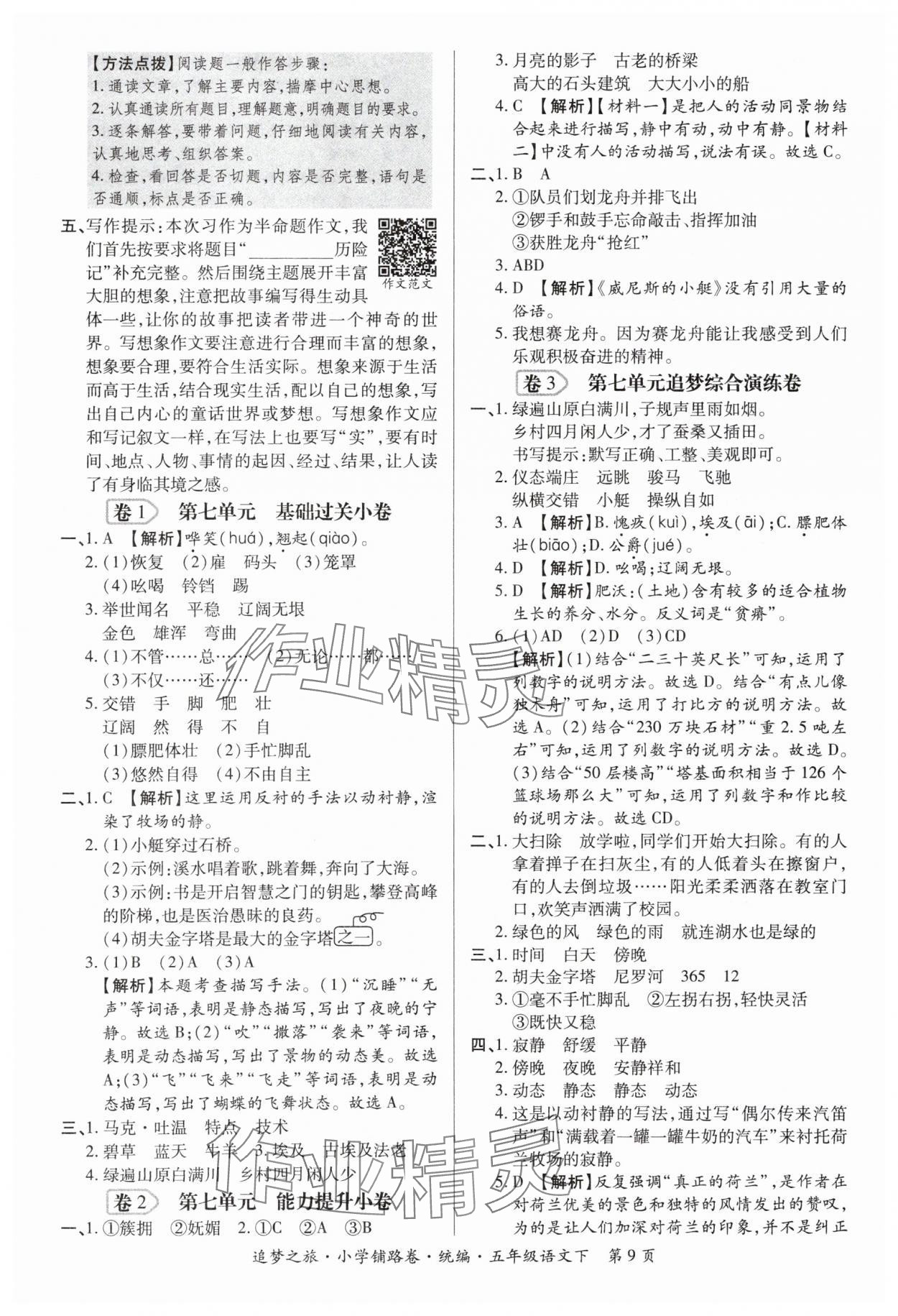 注:目前有些书本章节名称可能整理的还不是很完善,但都是按照顺序排列的,请同学们按照顺序仔细查找。练习册 2024年追梦之旅铺路卷五年级语文下册人教版 答案主要是用来给同学们做完题方便对答案用的,请勿直接抄袭。