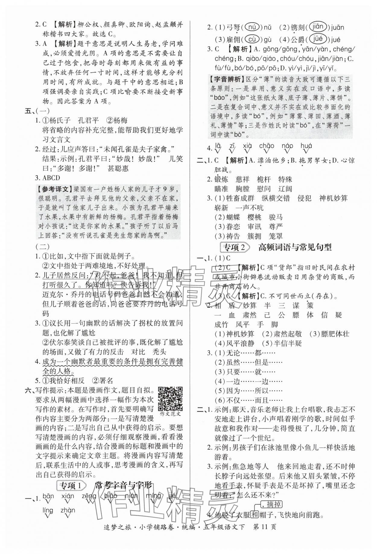 注:目前有些书本章节名称可能整理的还不是很完善,但都是按照顺序排列的,请同学们按照顺序仔细查找。练习册 2024年追梦之旅铺路卷五年级语文下册人教版 答案主要是用来给同学们做完题方便对答案用的,请勿直接抄袭。